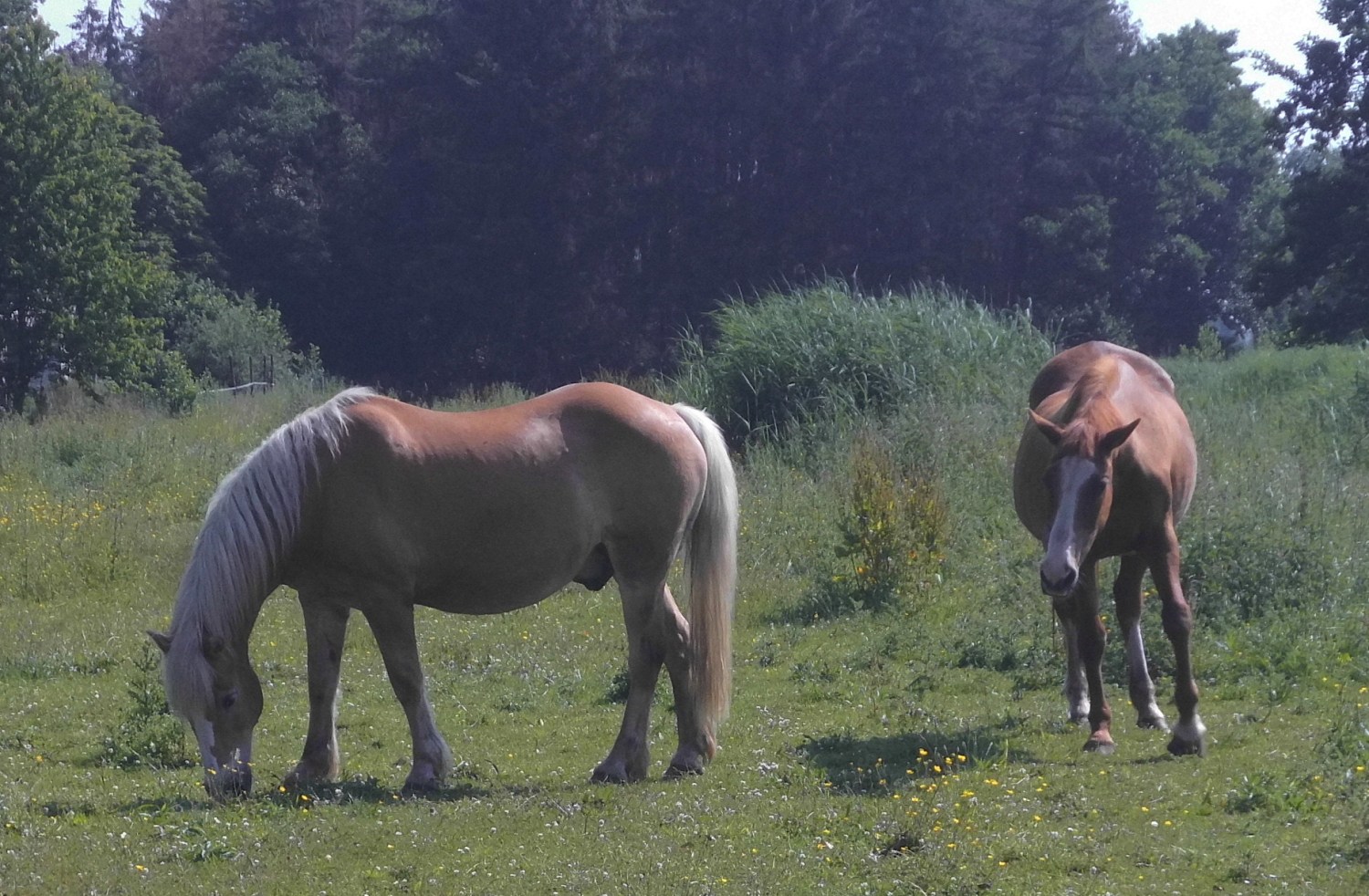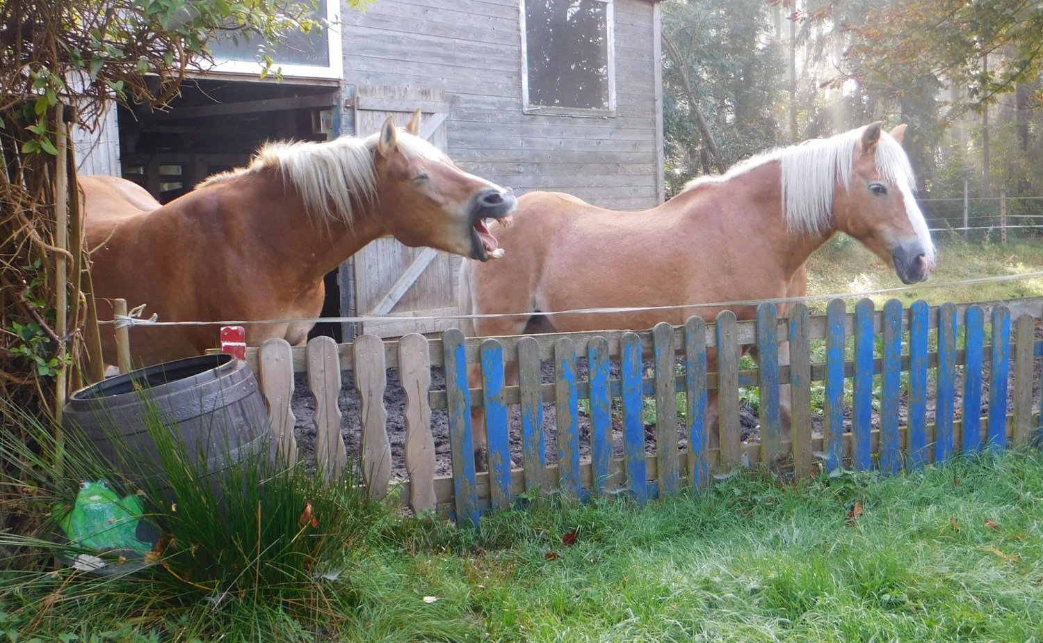 Weil es dann heißt: „Jungs, was macht ihr denn hier schon wieder? Kommt mit, wir gehen zurück in den Stall“. Zum Glück sind die beiden brav und folgen mir ohne großes Theater.