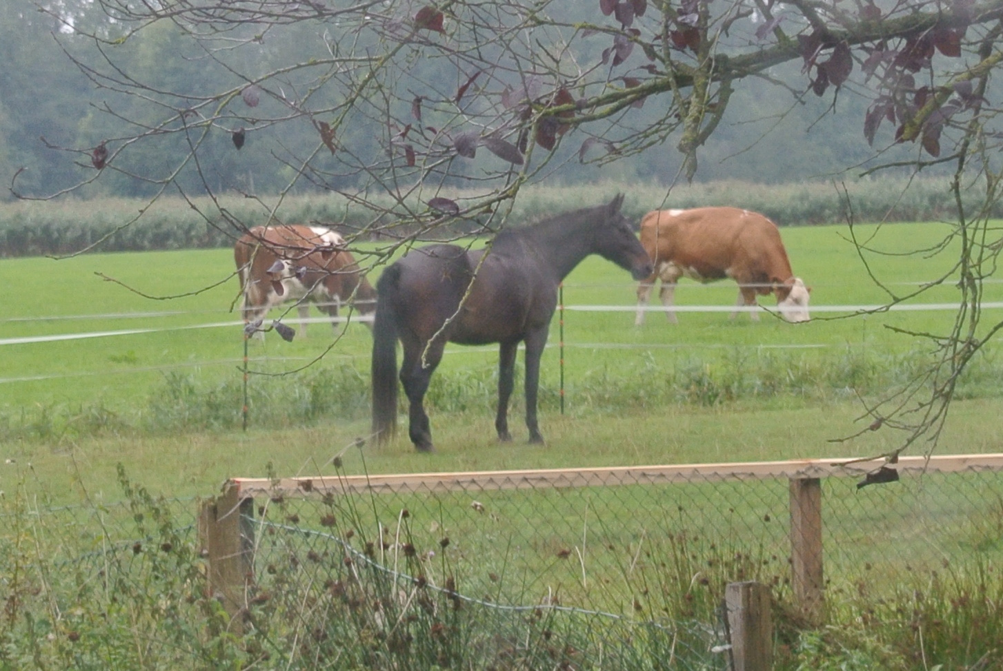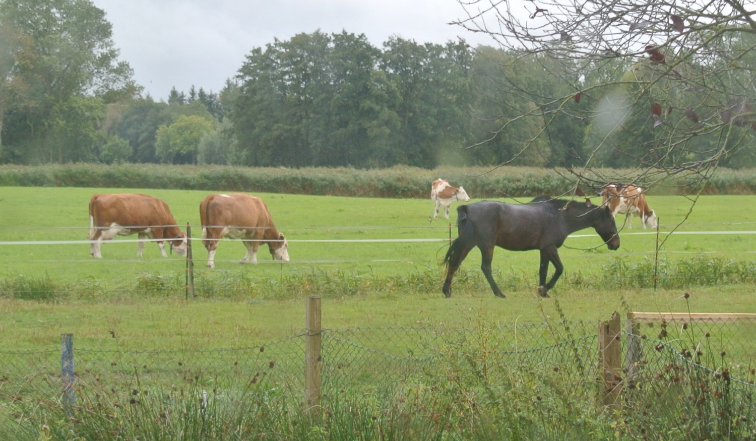Ich war gespannt, wie Black Beauty reagieren würde. Denn ihn kann manches ganz schön aus der Fassung bringen. Ich wusste ja nicht, ob er Kühe kannte.