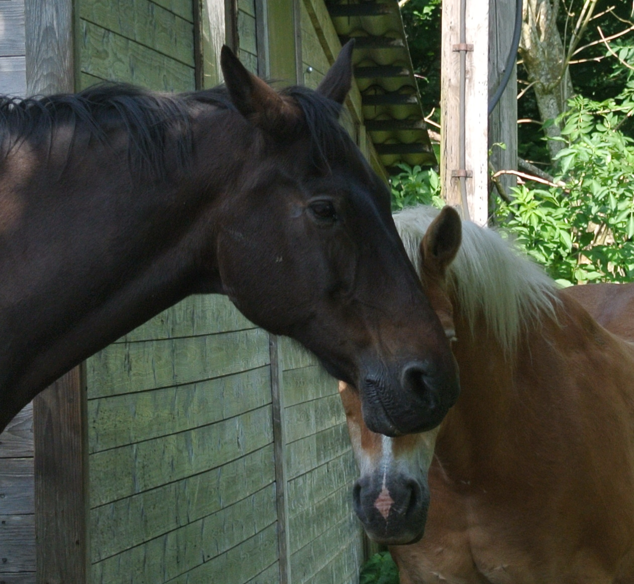 Limerick war wohl auf der Weide und hatte Astrons Ausbruchsversuche nicht mitbekommen. Als Marcy zu mir kam und petzte „die Pferde sind ausgebrochen“, stand Astron im Innenhof. Limerick war auf dem Paddock und war nicht in der Lage die Stalltür aufzustoßen. Er wusste nicht wie er zu Astron kommen sollte.
