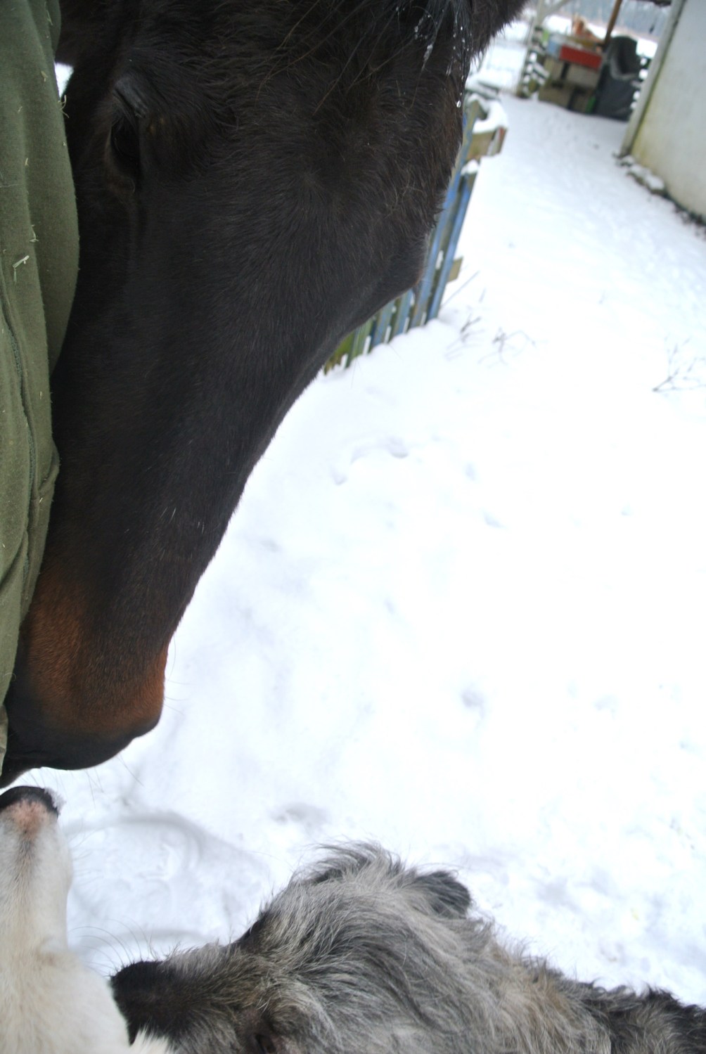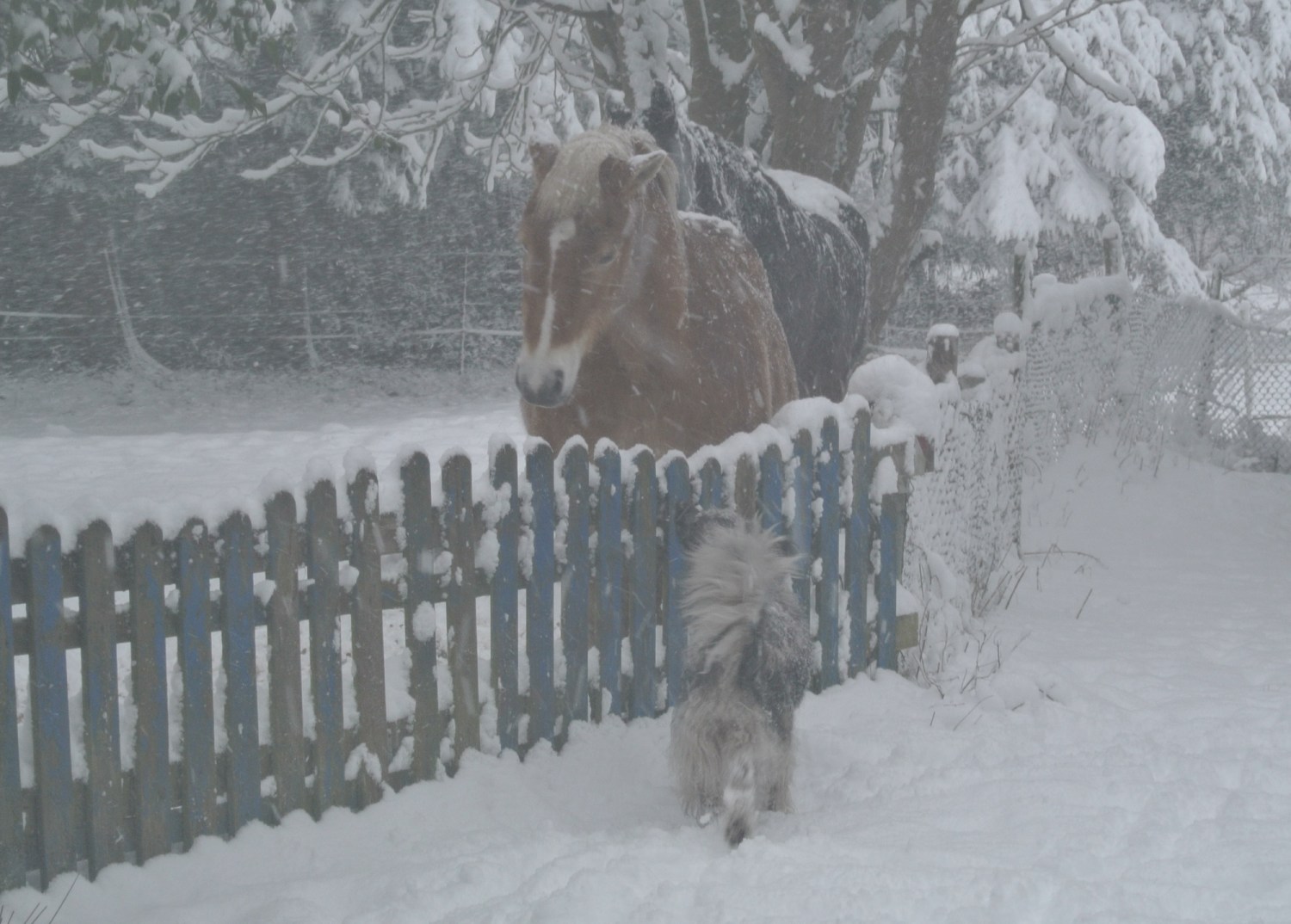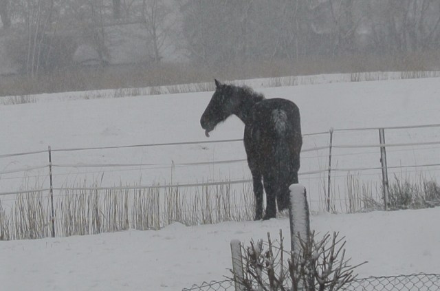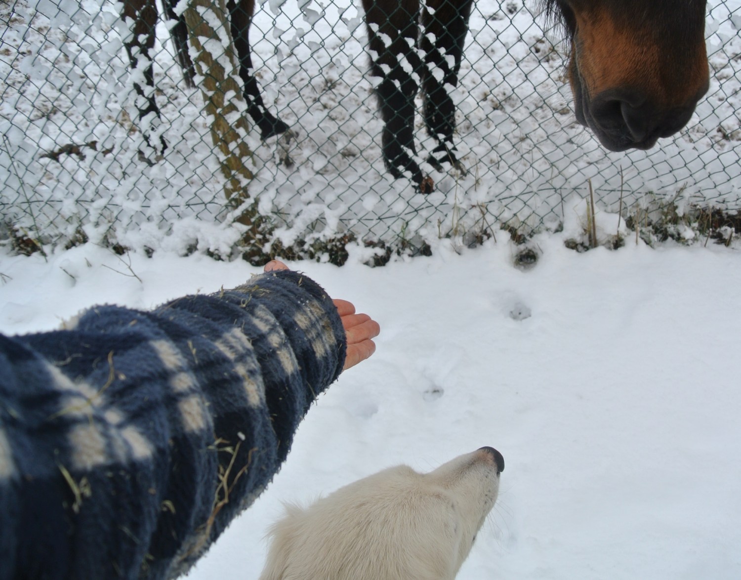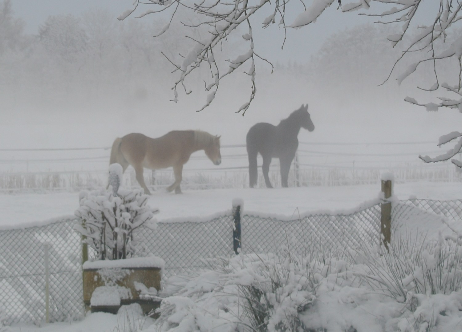 Ich habe noch ein paar Fotos von den Pferden und Hunden im Schnee für euch. Die Bilder sind am 04. Januar entstanden. Beim Schneesturm habe ich nicht fotografiert.