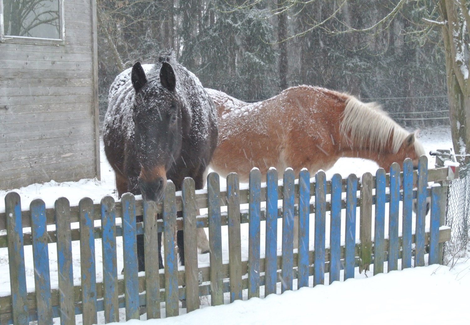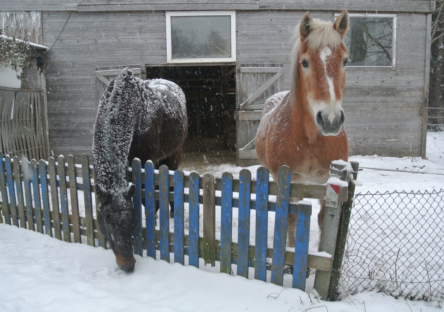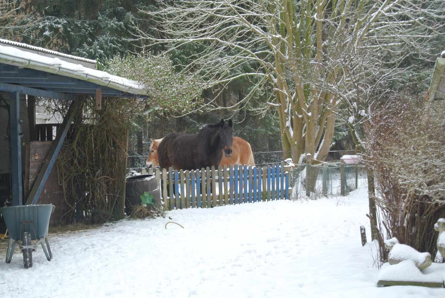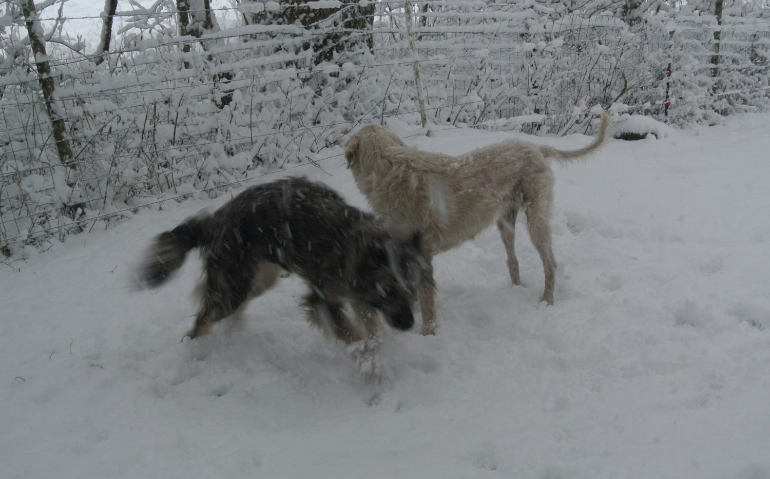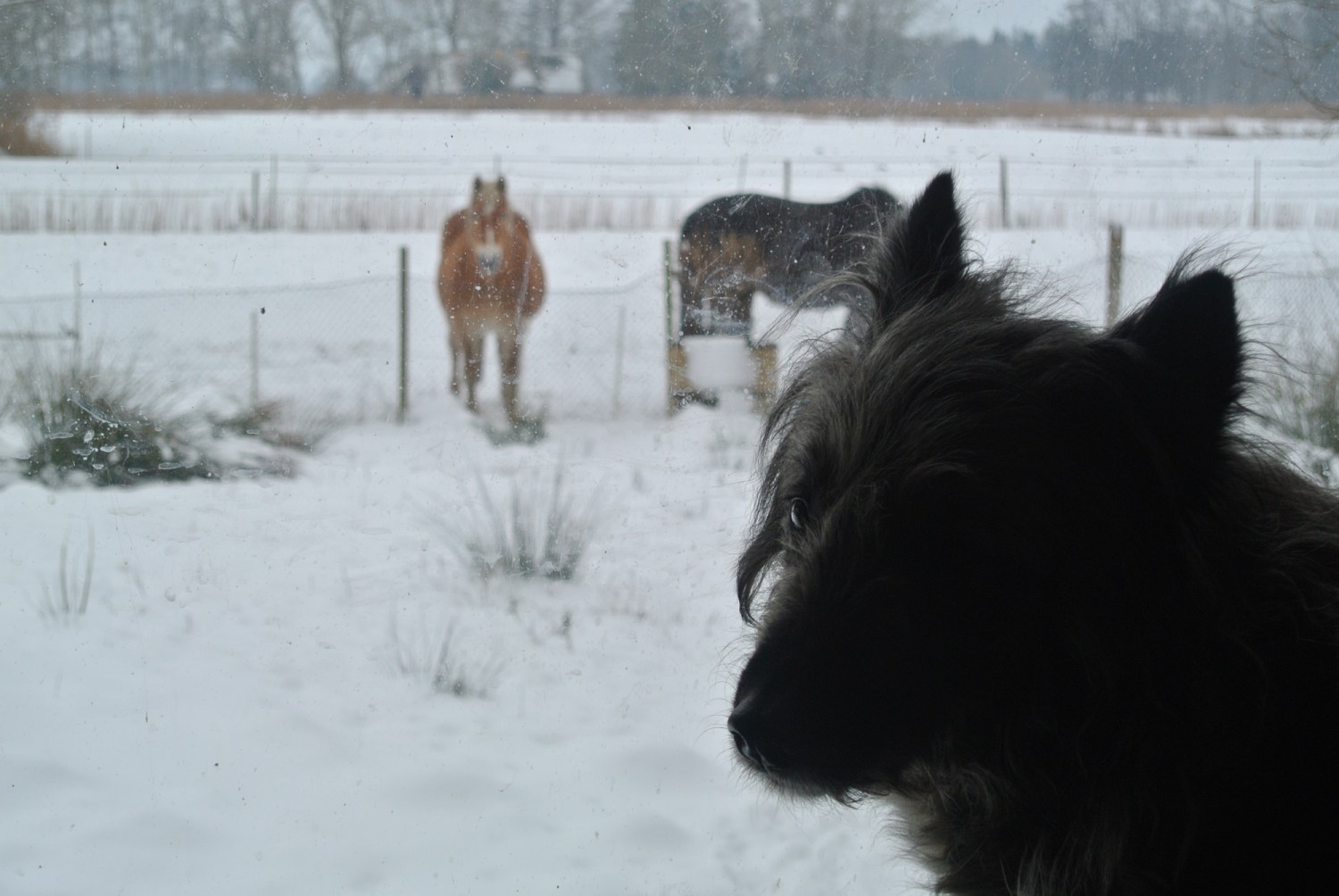Ich habe noch ein paar Fotos von den Pferden und Hunden im Schnee für euch. Die Bilder sind am 04. Januar entstanden. Beim Schneesturm habe ich nicht fotografiert.