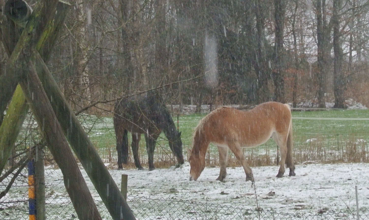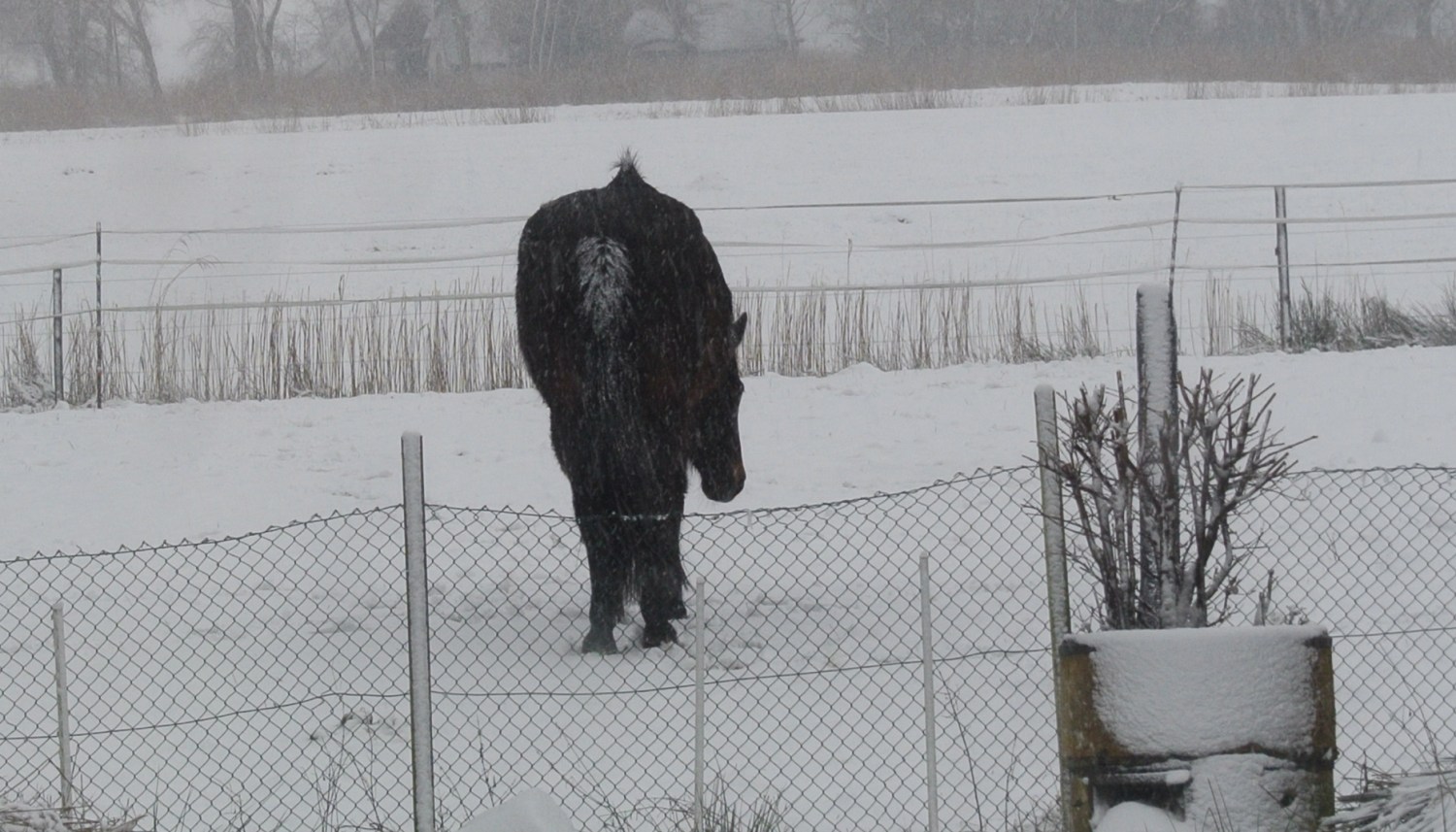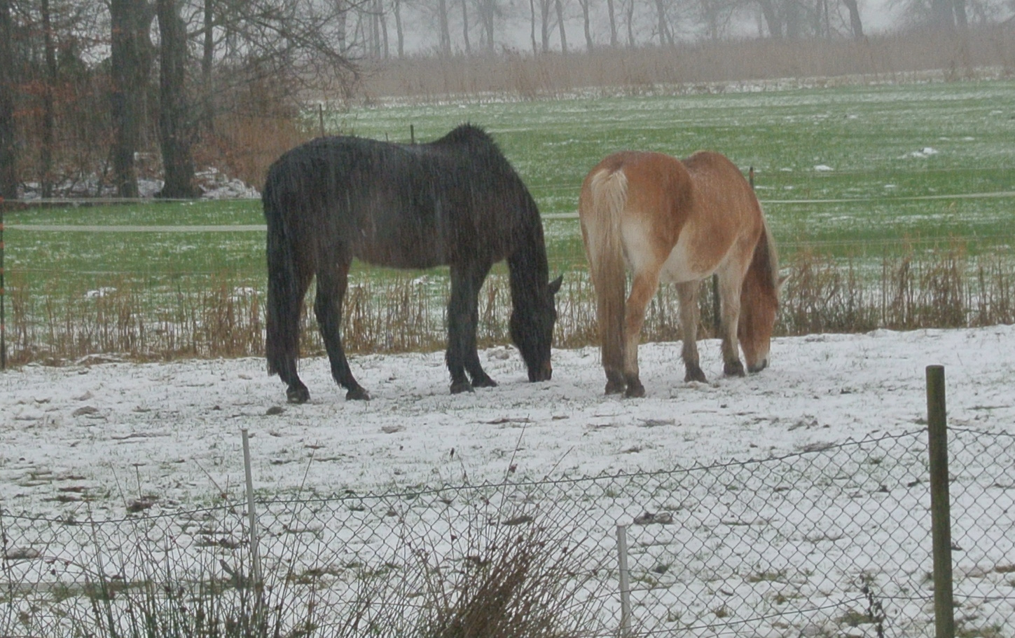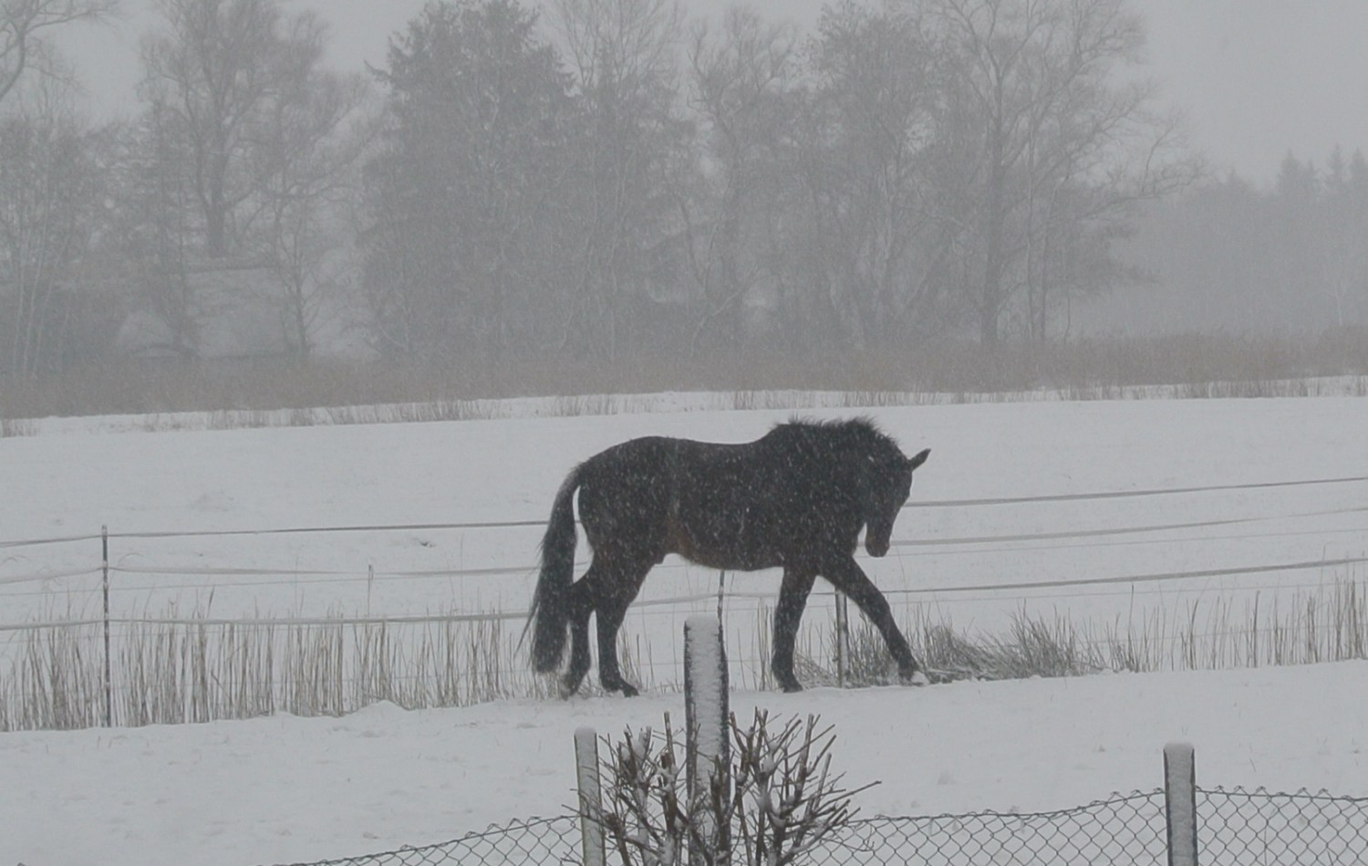 Ein gut ausgebildetes Winterfell, einen Offenstall zum Unterstellen, angepasste Futtermenge, lässt Pferde gut und naturnah durch den Winter kommen. Dann brauchen unsere Pferde auch nicht eingedeckt werden.