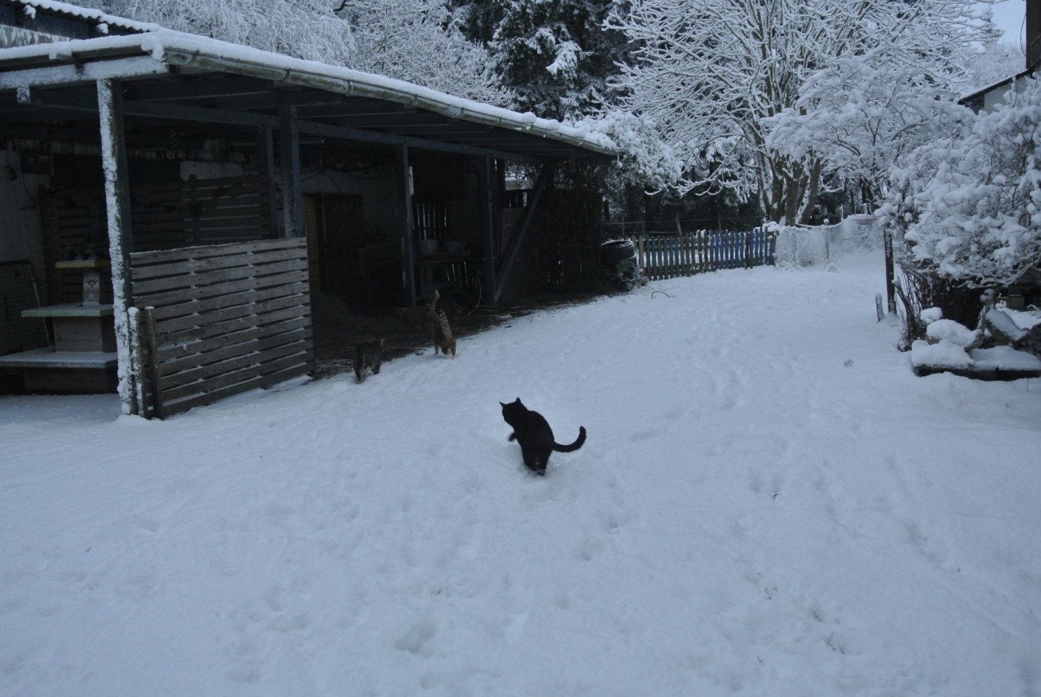 Auch wenn es immer noch schön aussieht, mir reicht es dann auch. Post und Müllabfuhr fahren nicht mehr, unsere Straße ist unpassierbar. Heute Morgen hatten wir 16 Grad Minus. Den ganzen Tag bleibt es weiter im Minusbereich, so um die -8 Grad.