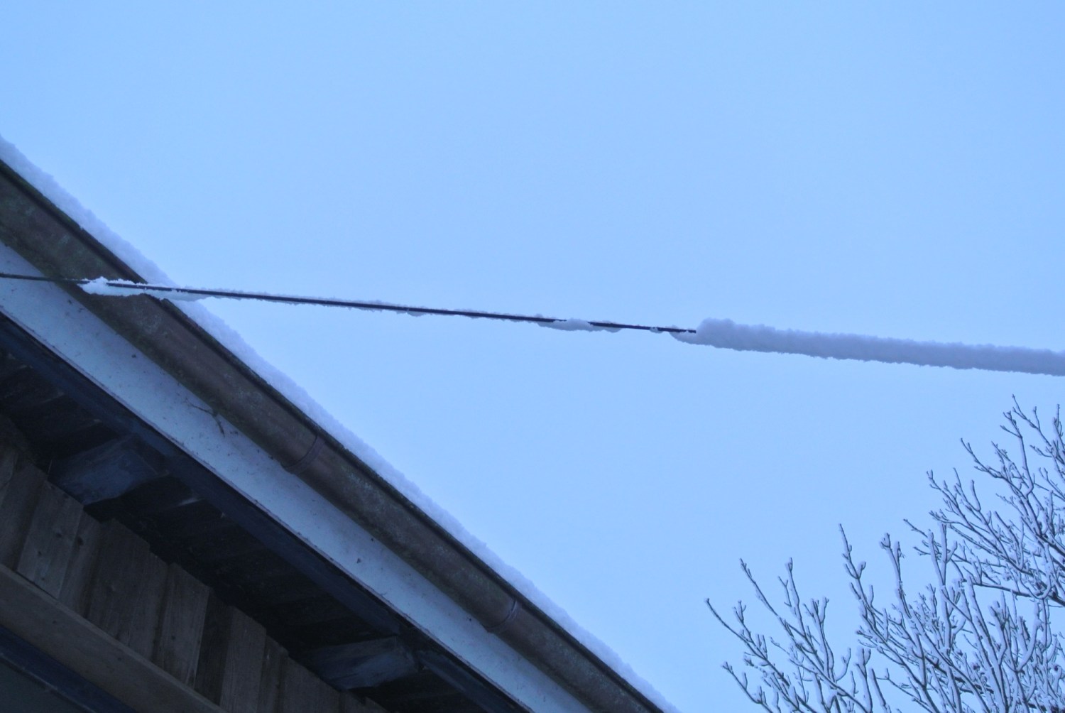 Hier seht ihr auf der linken Seite wo der Schnee abgefallen ist, wie dünn die Leitung wirklich ist.
