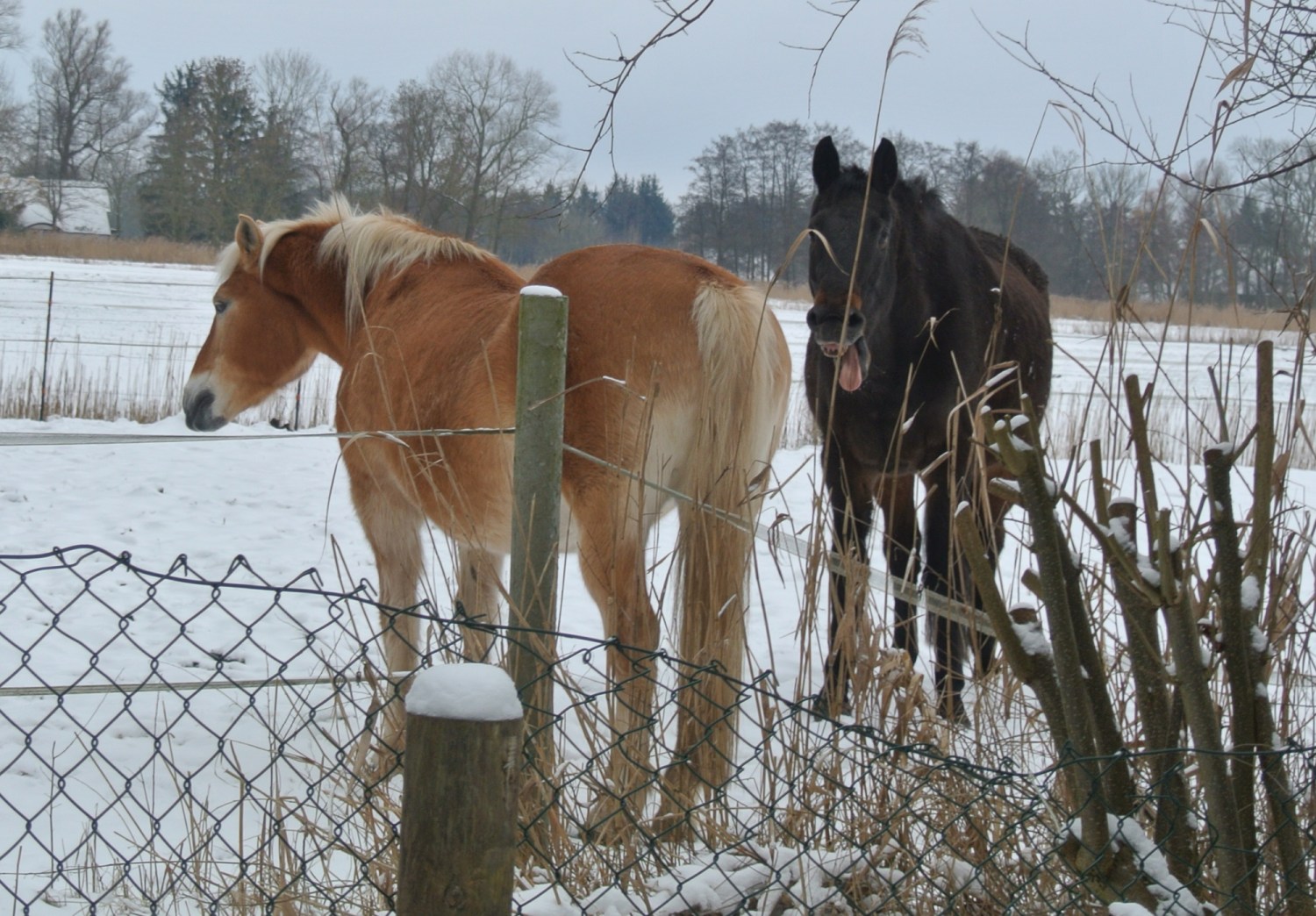 Das war am 04. Februar. Da standen die beiden Jungs auf dem Paddock und haben sich einschneien lassen.