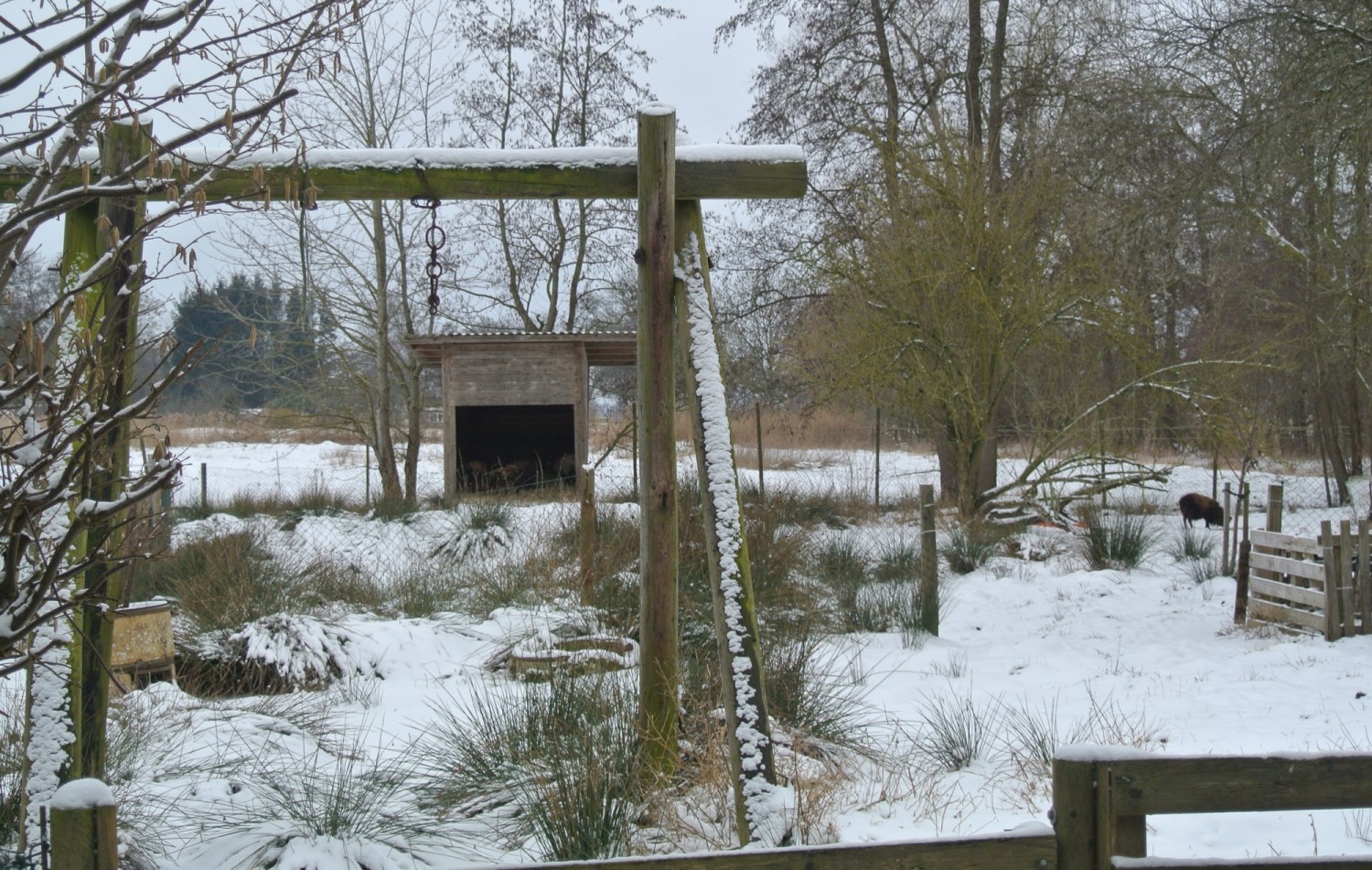 Die Arbeit auf dem Gnadenhof wird dadurch anstrengend. Bei strengen Frost ist es nicht einfach, die Tränken bei den Pferden und Schafen eisfrei zu halten. Außerdem muss mehr gefüttert und die Ställe mehrmals täglich gemistet werden. Weil die Tiere sich bei dem Wetter mehr drinnen aufhalten.