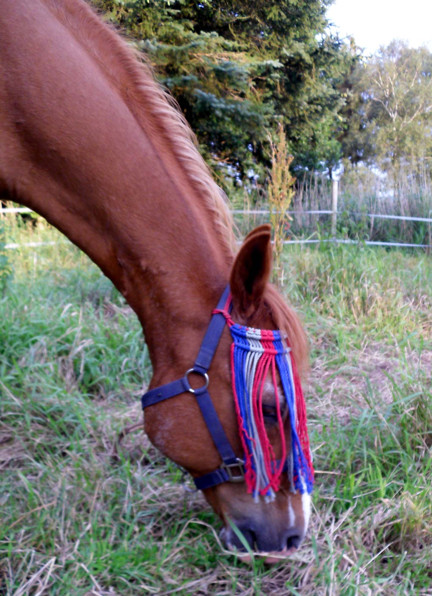 Indianer-Pony Bachus, Du siehst klasse aus mit dem Fliegenschutz. Erzähl Deiner Miranda mal, dass sowas nicht nur schön, sondern auch praktisch ist. Mit Deiner Hilfe gewöhnt sie sich bestimmt ganz schnell daran. Alles Liebe für Euch beide und Eure Susa von Edith mit den Fellnasen..
