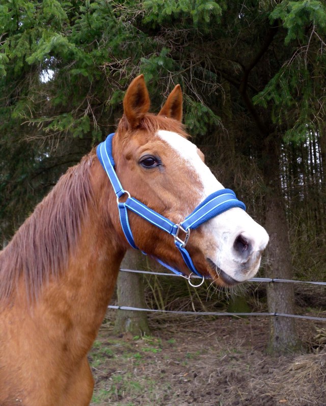 Dein Schwäbisch ist lustig! Ich kenn noch den Struch: „Wenns schee macht!“ Das sagte Miranda auch, als sie das erste Mal das leuchtend blaue Halfter trug… 😀