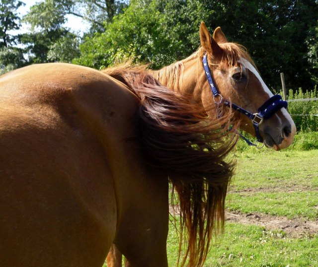 Er denkt sich bestimmt: „Ätsch, jetzt bin ich wieder das schönste Pferd weit und breit!“ 😀 Schick schaut er aus der Bub! 😀