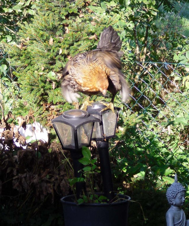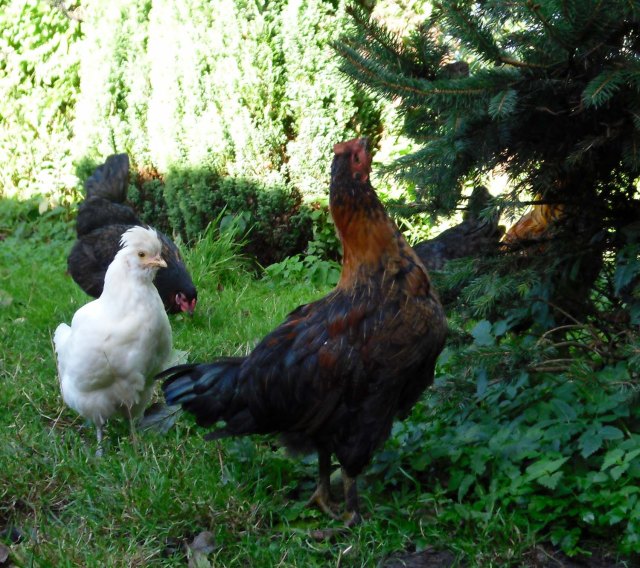 Ich habe auch einiges an alten Landhuhnrassen mit ein paar besonderen Rassen wie z.B. Araucanern und Seidenhühner gemixt. Das Ergenis ist sehr bunt, frohwüchsig, robust und schön zutraulich geworden! 😀