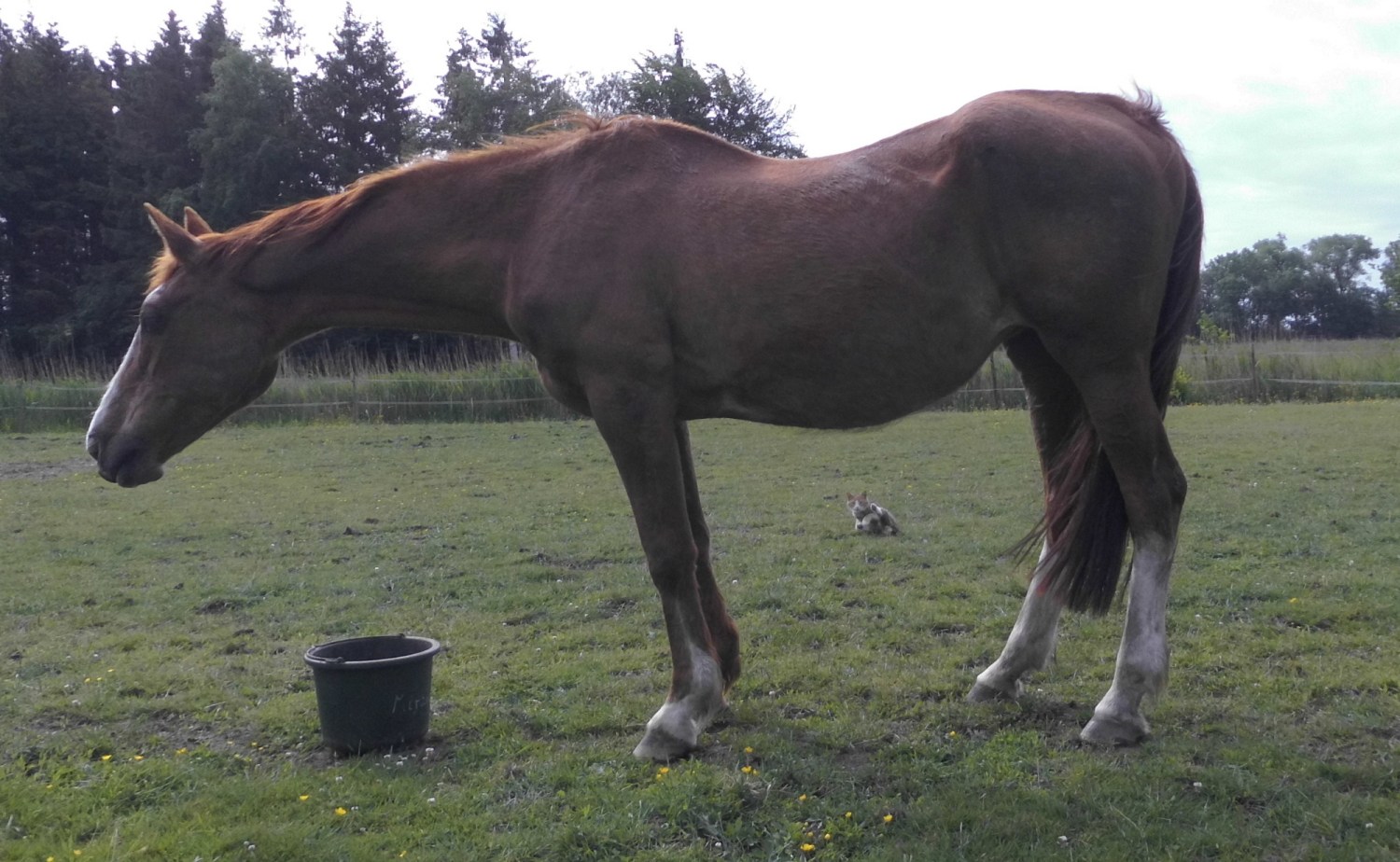 Ja, was meinst Du wie ich die Luft anhalte, bis die Katze unter dem Pferd durch ist. Pferde sind Fluchttiere. Die können in der nächste Sekunde blitzschnell davonstürmen oder einen Satz zur Seite machen.