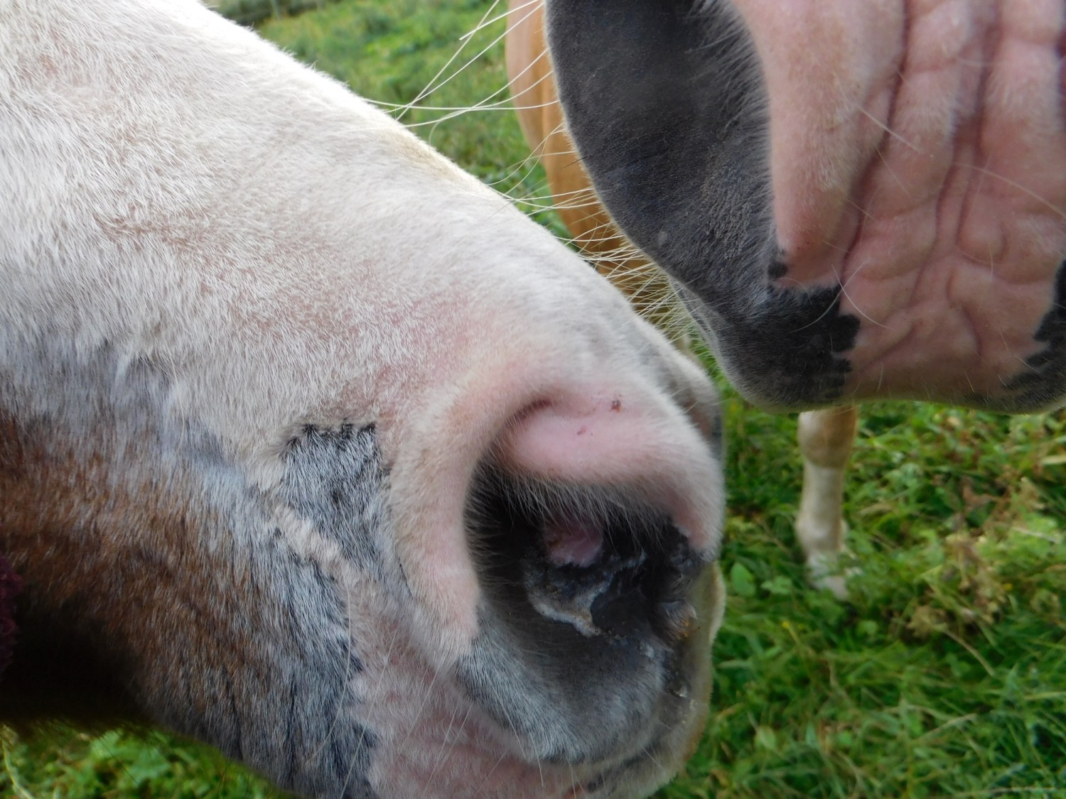 • Momentan ist noch ein bisschen Gras auf der Weide. Wie lange der Sack hält wenn nichts mehr drauf ist, weiß ich noch nicht. Die Futtermenge variiert sowieso etwas, je nach Temperatur. Miranda frisst zwar noch normales Heu, aber sie dreht sehr viele Röllchen, die sie wieder ausspuckt. Wieviel Heu ins Pferd geht und wie das verstoffwechselt wird, lässt sich schwer beurteilen. Ich achte sehr genau auf ihr Gewicht und passe dem entsprechend das Horse Alpin Senior an. Miranda soll möglichst nicht abnehmen. Es ist so schwierig ein so altes Pferd wieder aufzufüttern. Heucobs finde ich von der Struktur her nicht so gut. Horse Alpin Senior besteht aus klein gemachten, nicht gepressten Fasern. Die werden vom Pferd länger gekaut. Dabei produziert es Speichel, der für die Verdauung wichtig ist. Die eingeweichten Cobs sind ein Brei, der nicht gekaut werden muss. Ich hoffe, dass wir genügend Spenden über den Winter erhalten, damit Miranda ausreichend mit Horse Alpin Senior versorgt werden kann und ich keine Cobs (die etwas günstiger sind) nehmen muss.