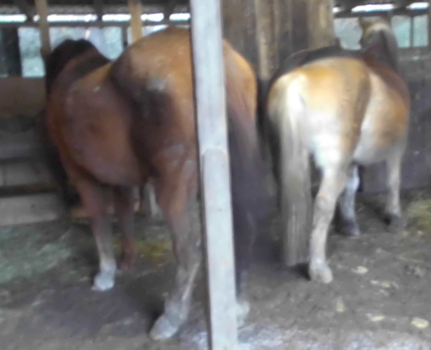 Hier seht ihr beide Pferde nach der Hufpflege, leider schön unscharf.