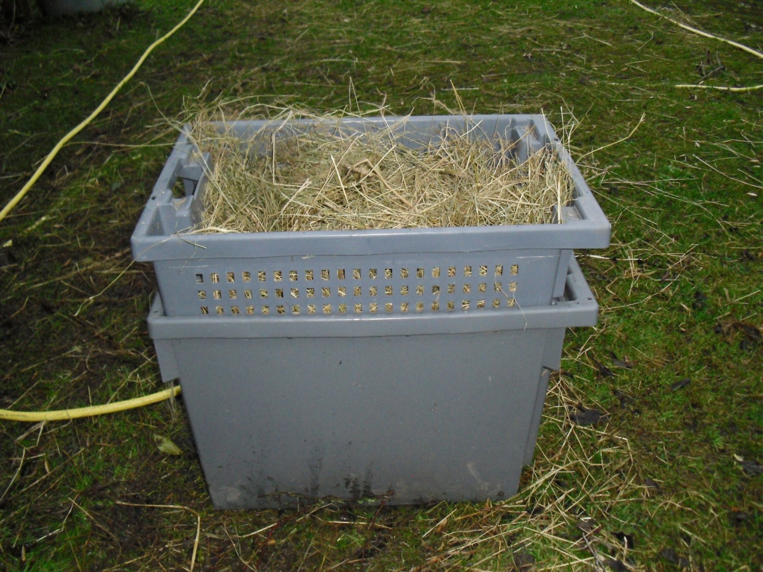 Zu Problem Nr. 1: Damit die Pferde keinen Heustaub beim Fressen einatmen, wird ihr Heu vor dem Verfüttern gewässert. Hierfür benutze ich so eine Heubadewanne.