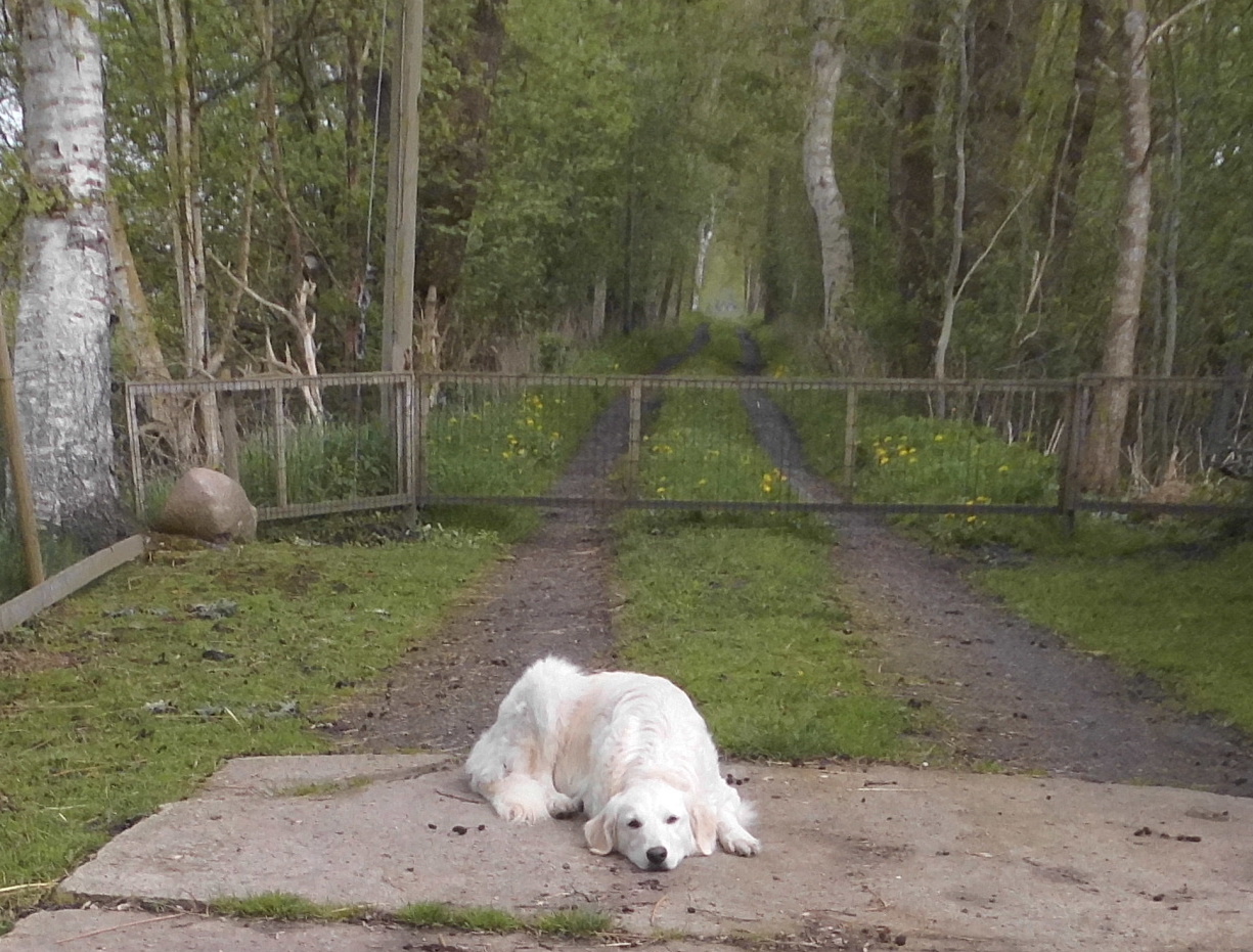 Das ist ein typisches Verhalten des Maremmanos. Er bewacht seine Herde und ist dabei völlig unaufgeregt. Er liegt gern auf einer taktisch günstigen Stellen, die auch gern erhöht sein darf, von der aus er alle Himmelsrichtungen im Blick hat.