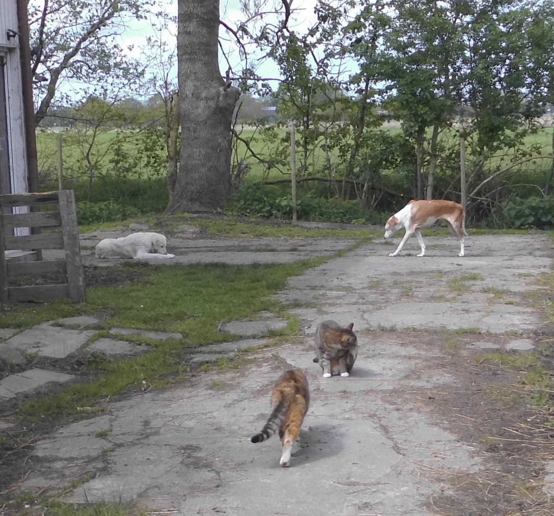 Wie ihr seht, ist Omi Chica immer dabei. Sie hat sich ja schon immer gern schnell bewegt und rennt auch jetzt noch im Sauseschritt über den Hof… Wenn sie nicht, gut bewacht von Giada, ein kleines Schläfchen einschiebt.
