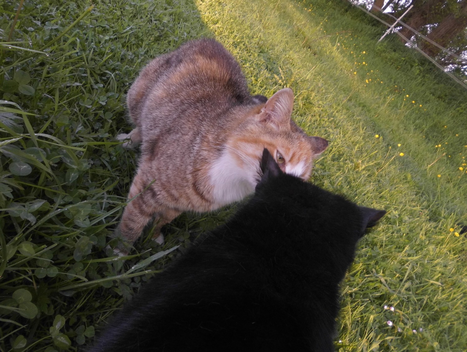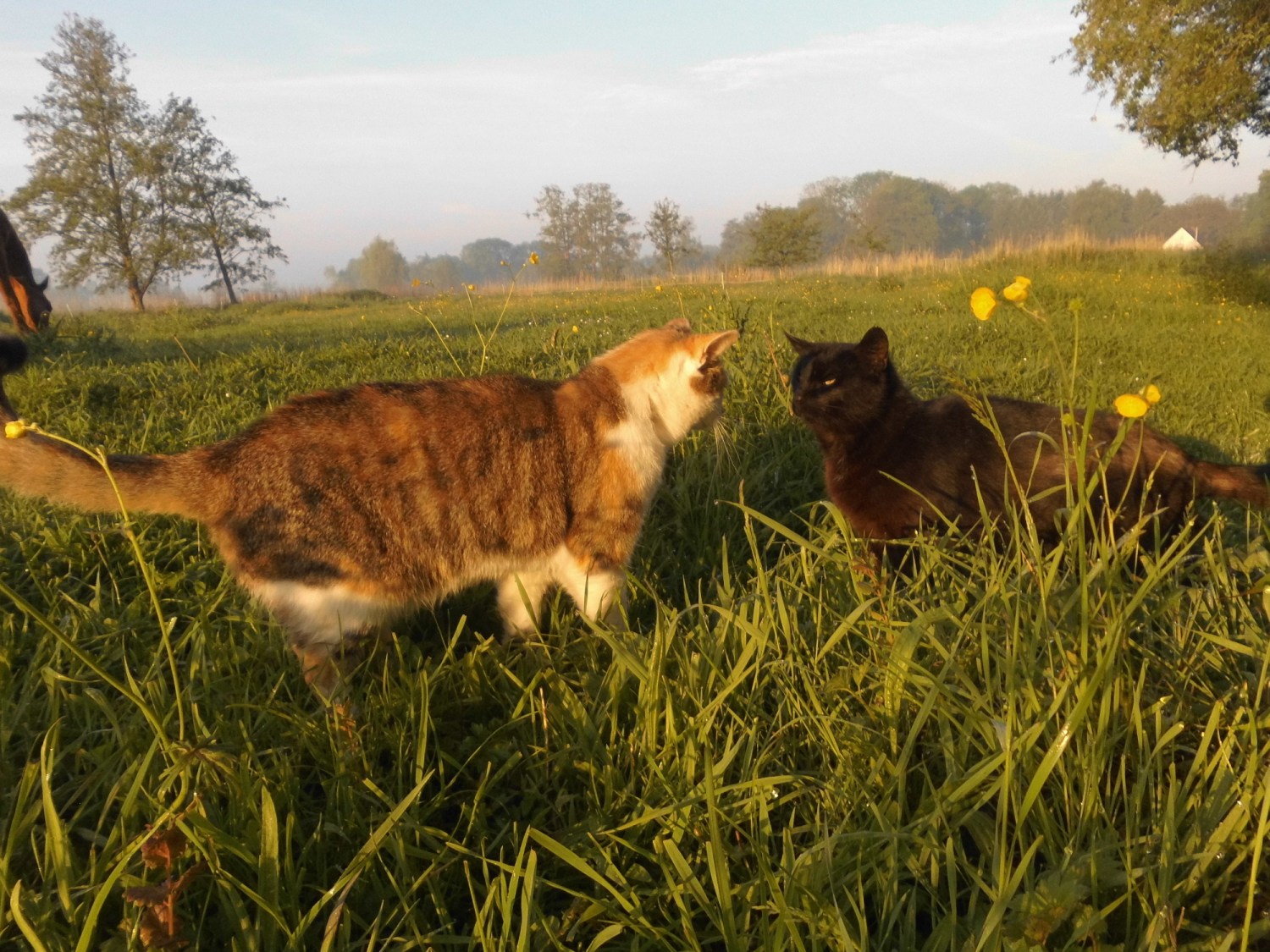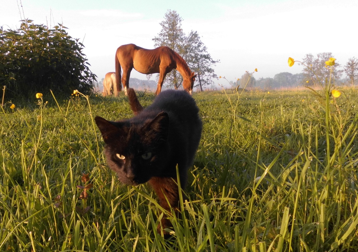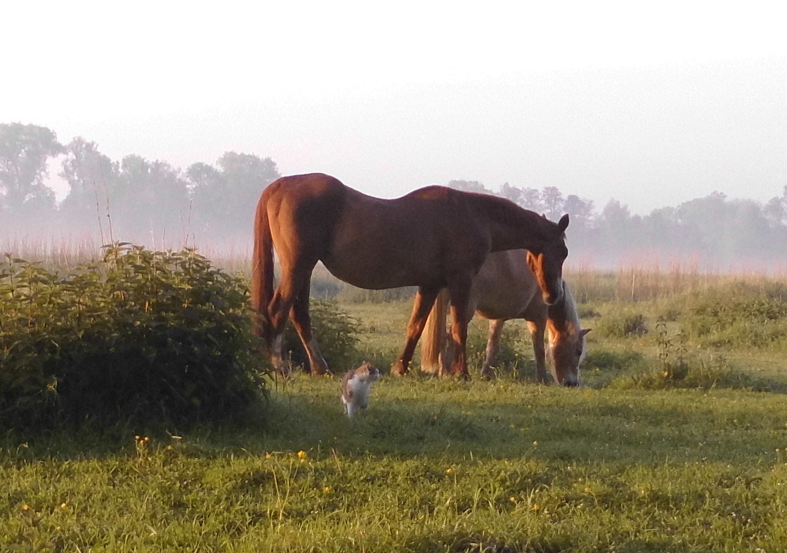 Die Katzen begleiten immer mich am frühen Morgen, wenn ich zu den Pferden gehe, um Nielsson seine Medikamente zu geben. Das ist immer so süß!