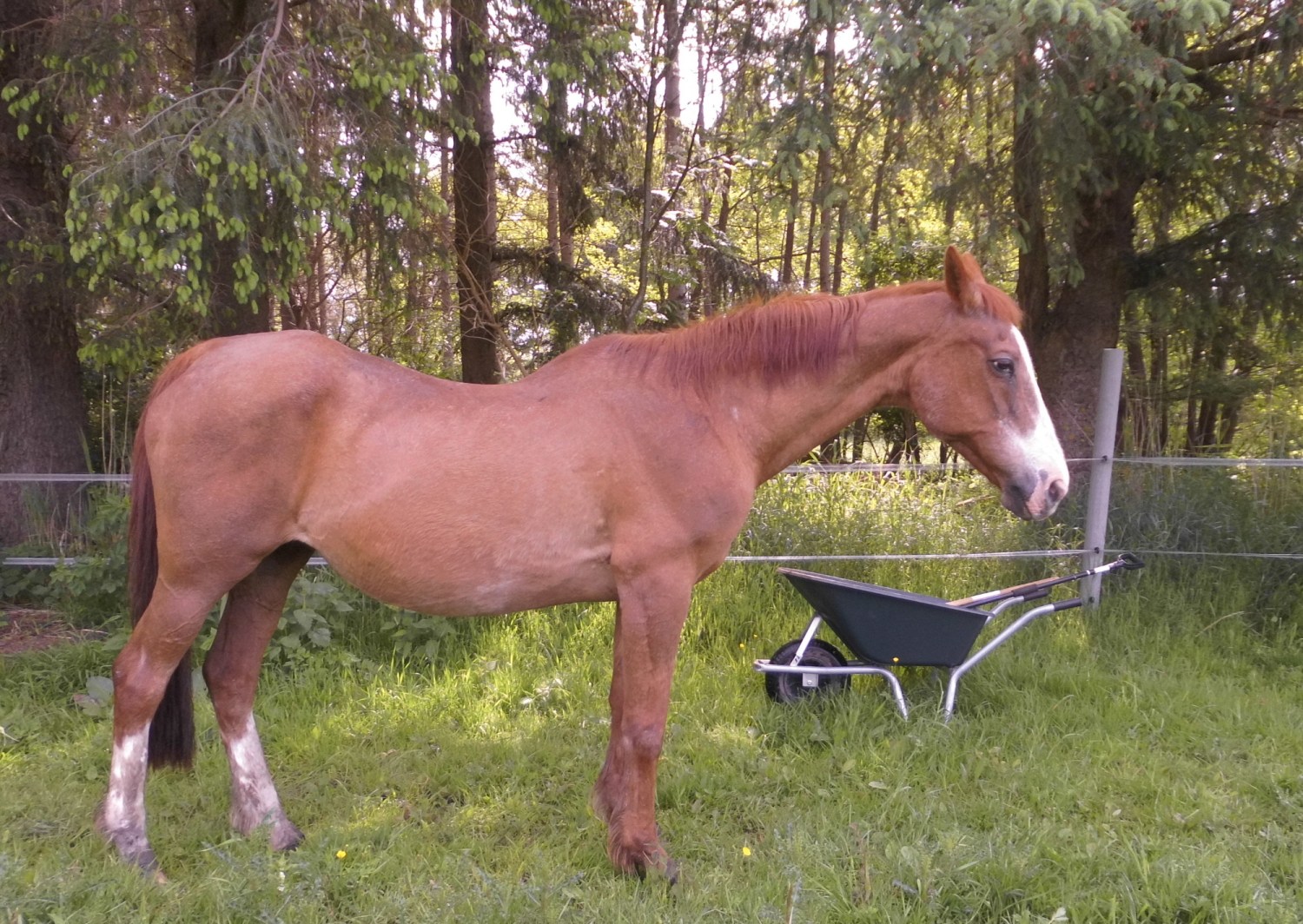 Die Stute zog am 24.06.2011, gemeinsam mit Wallach Bachus, auf unseren Hof. Bachus war ein altes, unreitbares Pferd, das bei uns ebenfalls das Gnadenbrot bekam.