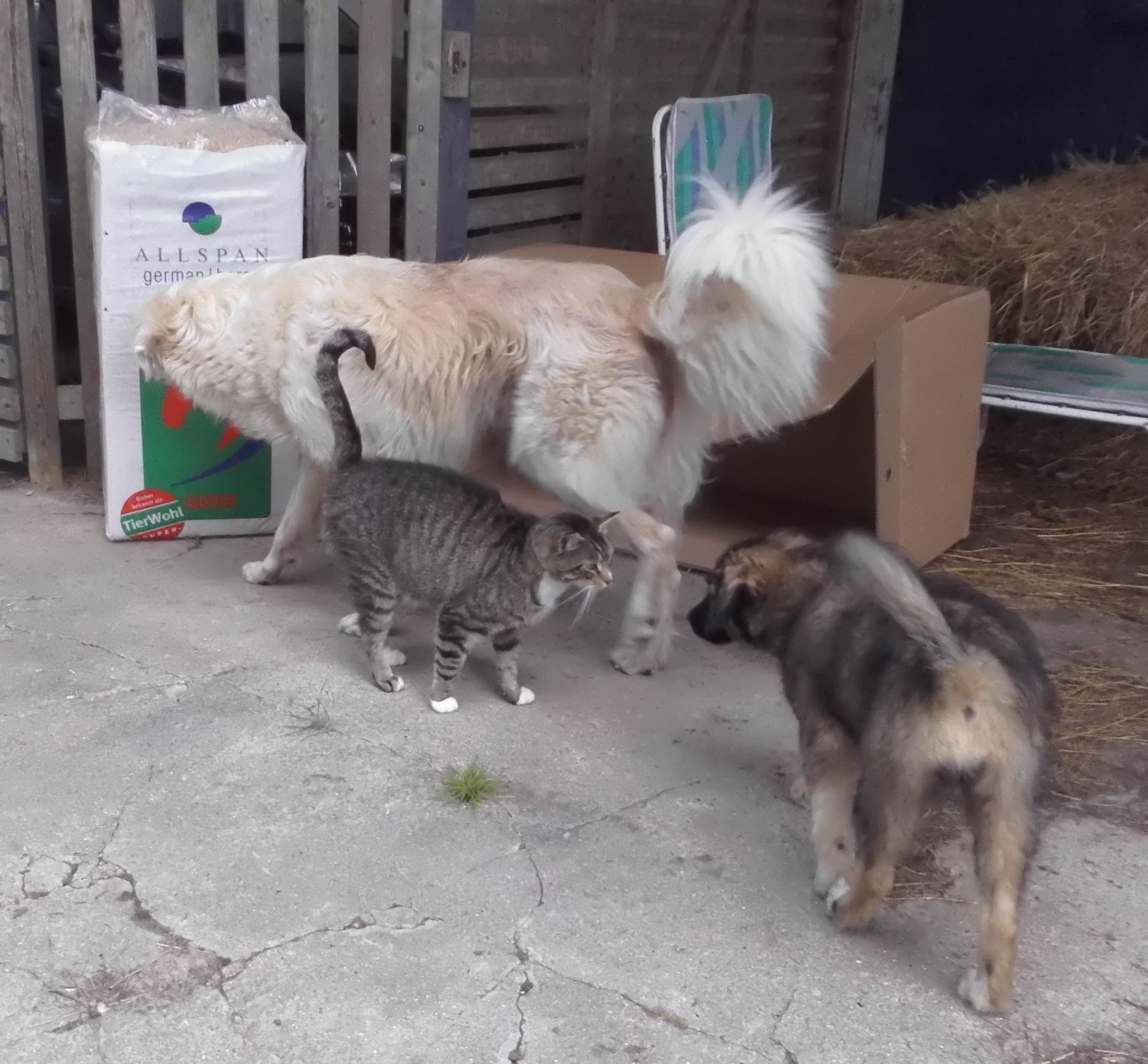 die Kekse sind auch angekommen, vielen Dank! ❤ Ich konnte nur nicht erkennen, dass die auch von Dir waren, weil kein Lieferschein beilag. Giada und Marcy freuen sich sehr und es schmeckt ihnen. 😀 Es gab auch ein Problem mit der Zustellung. Unser schnelle Eddi (Postbote) hatte seinen freien Tag. Seine Vertretung warf das Päckchen einfach ca. 250 Meter vor unserem Hof, mitten in der Pampa in eine Gitterbox, die dort für Abfälle steht. Ich habe es nur durch Zufall gefunden. Das passierte dann noch 2 x mit von uns bestellten Futterpaketen und mit Flohmarktsachen von einer lieben Unterstützerin. Die Vertretung hat inzwischen einen auf den Sack bekommen und wird das hoffentlich nicht noch einmal machen.