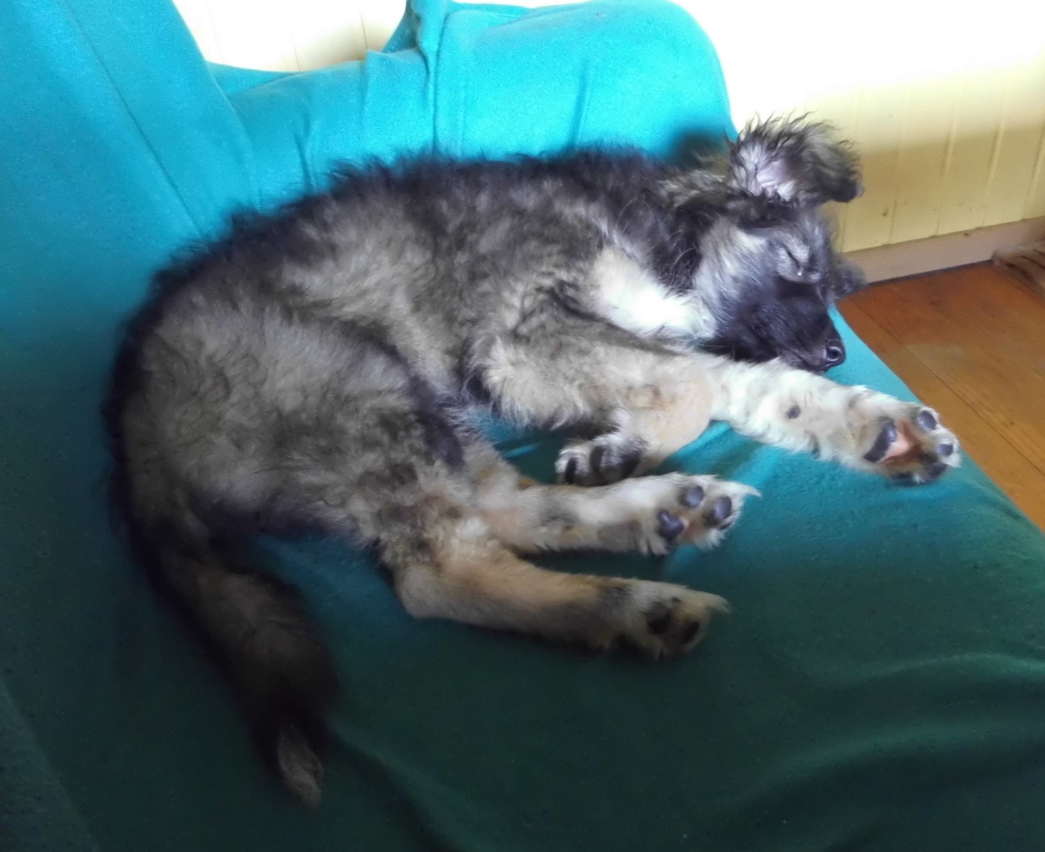 Bereits am Morgen nach ihrer Ankunft entschied Marcy, dass ich jetzt ihre neue Mutti bin. Seitdem läuft sie mir überall hinterher. Am liebsten schläft die Kleine wenn sie irgendwo bei mir andocken kann. Dann schreckt wie auch nicht aus dem Schlaf hoch. Nur aufstehen darf ich nicht, dann folgt Marcy mir wie ein Schatten.