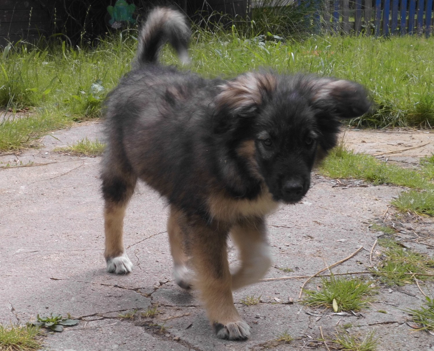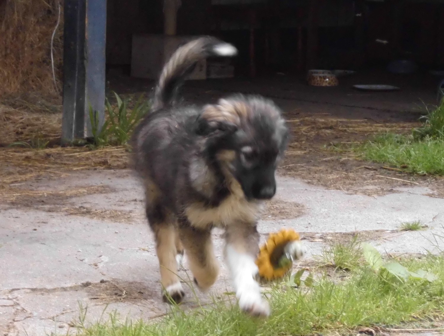 Marcy hatte in Rumänien hungern müssen und auf der Straße gelernt, nur der schnellste Hund hat einen vollen Bauch. Es ist wirklich traurig, dass bereits ein kleiner Welpe um sein Futter kämpfen muss. Marcy scheint das harte Leben aber nicht weiter traumatisiert zu haben. Sie ist angstfrei, neugierig und kann sich sehr gut auf dem Gelände orientieren. Sie läuft schon auf dem ganzen Hof herum und ist nicht überfordert damit.