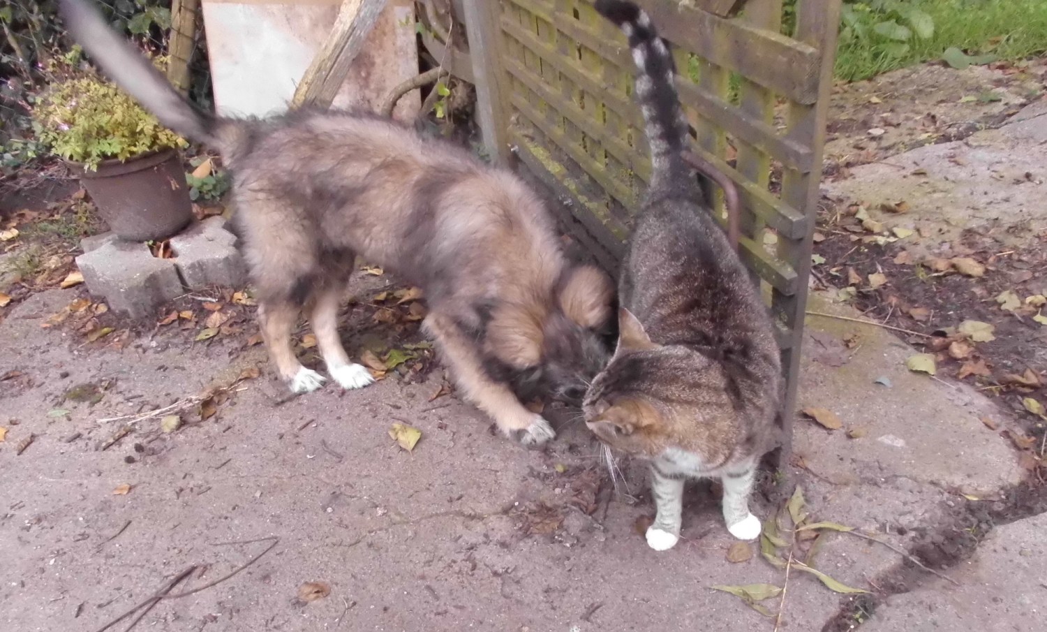Mit den Katzen klappt es auch schon gut. Carry kuschelt breits Marcy, Sissy, Goldi und Moni bleiben einfach sitzen, wenn Marcy angedüst kommt. Die anderen Miezen springen einfach irgendwo drauf und schauen von oben auf die kleine Nervensäge.