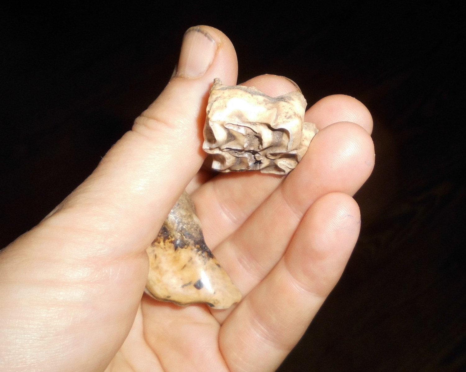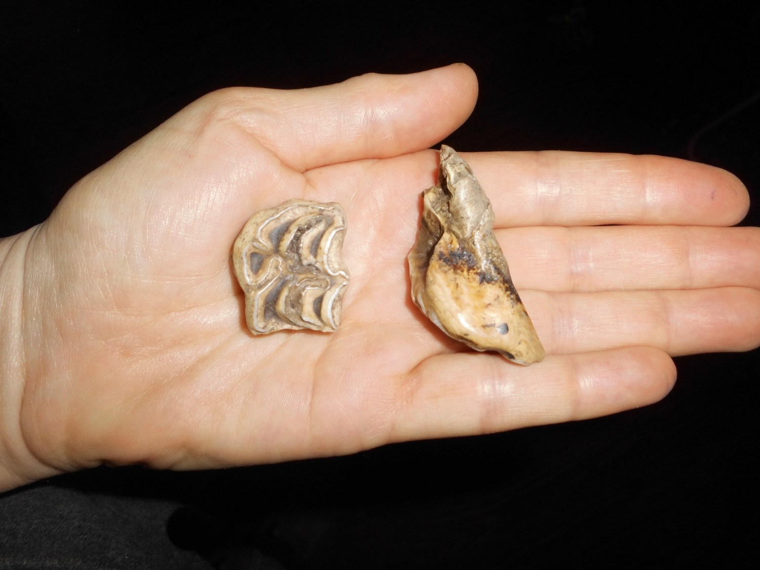 Diese beiden Zähne habe ich auf der Weide gefunden.