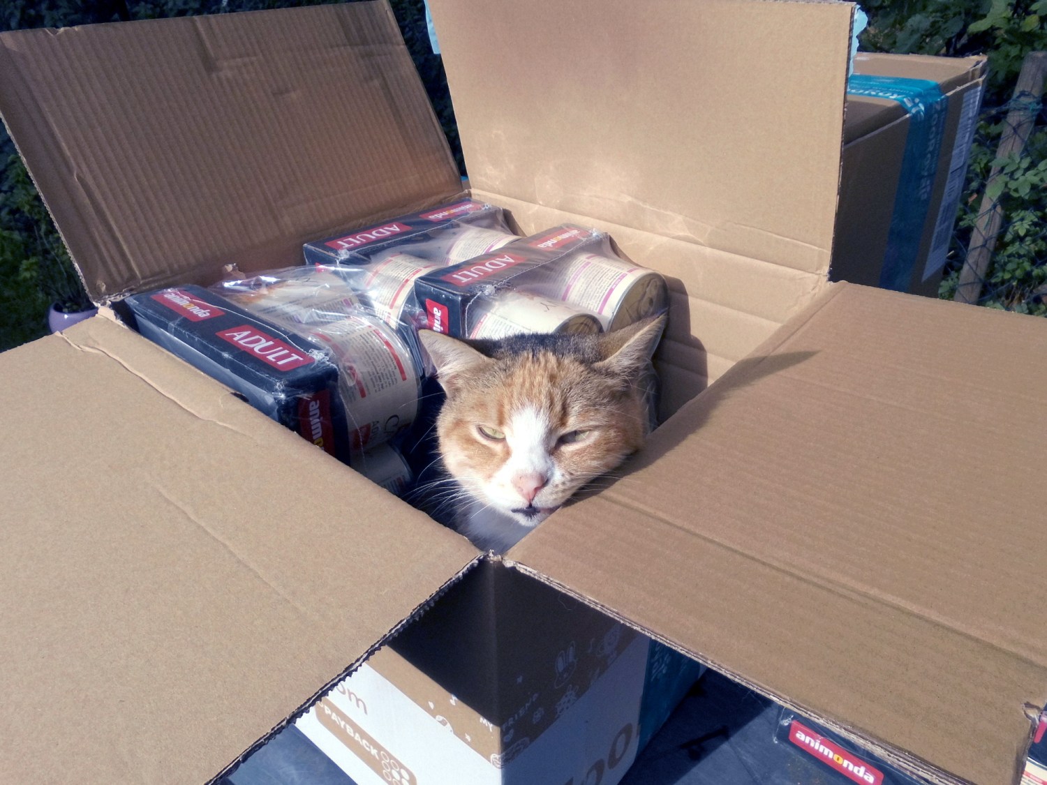 Ein befreundeter Tierschutzverein hat uns mit einem Haufen Katzenfutter unter die Arme gegriffen.