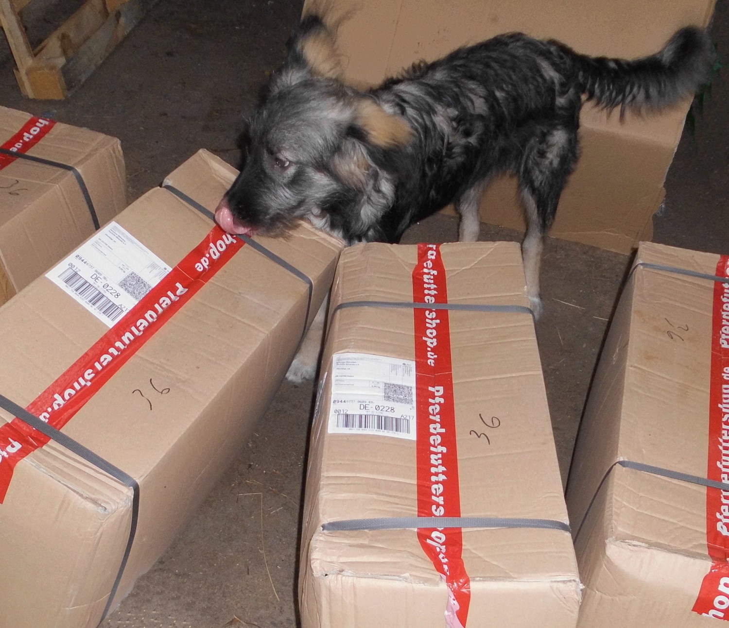 Dank der vielen Spenden der letzten Tage, die von all unseren lieben Unterstützern kamen, ist die Futterkammer erst einmal gut gefüllt. Das ist eine sehr große Erleichterung für uns.