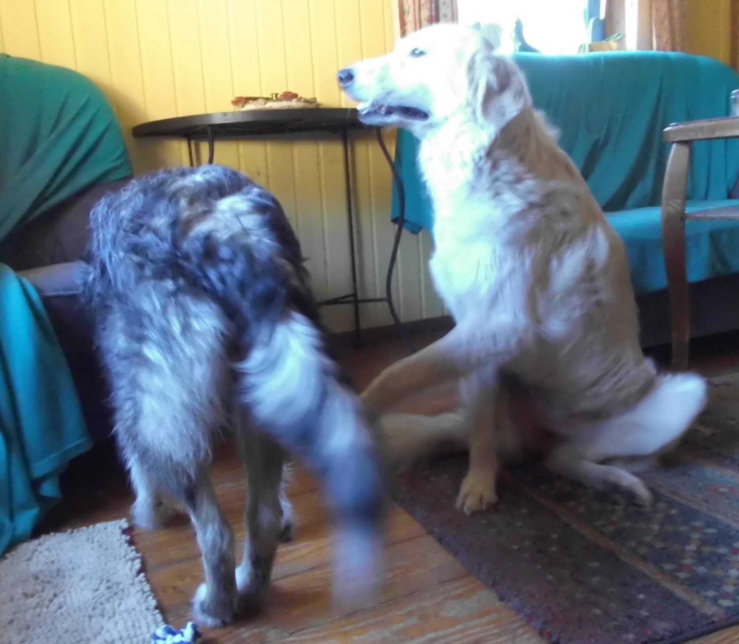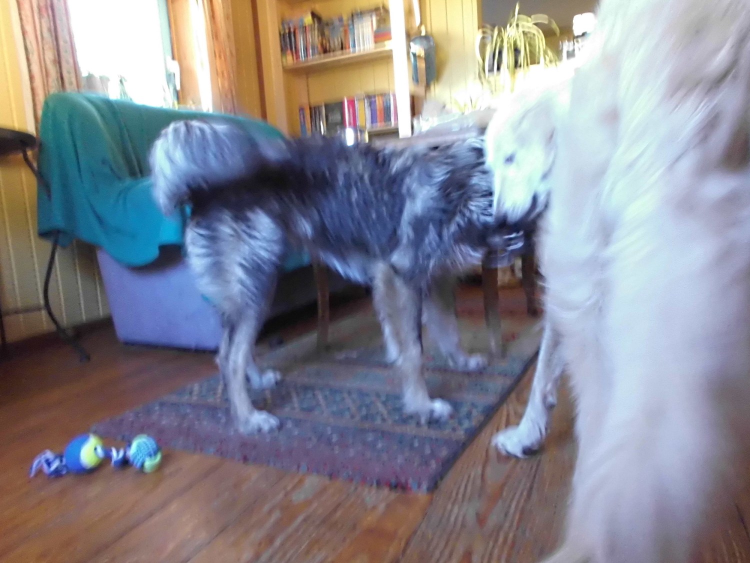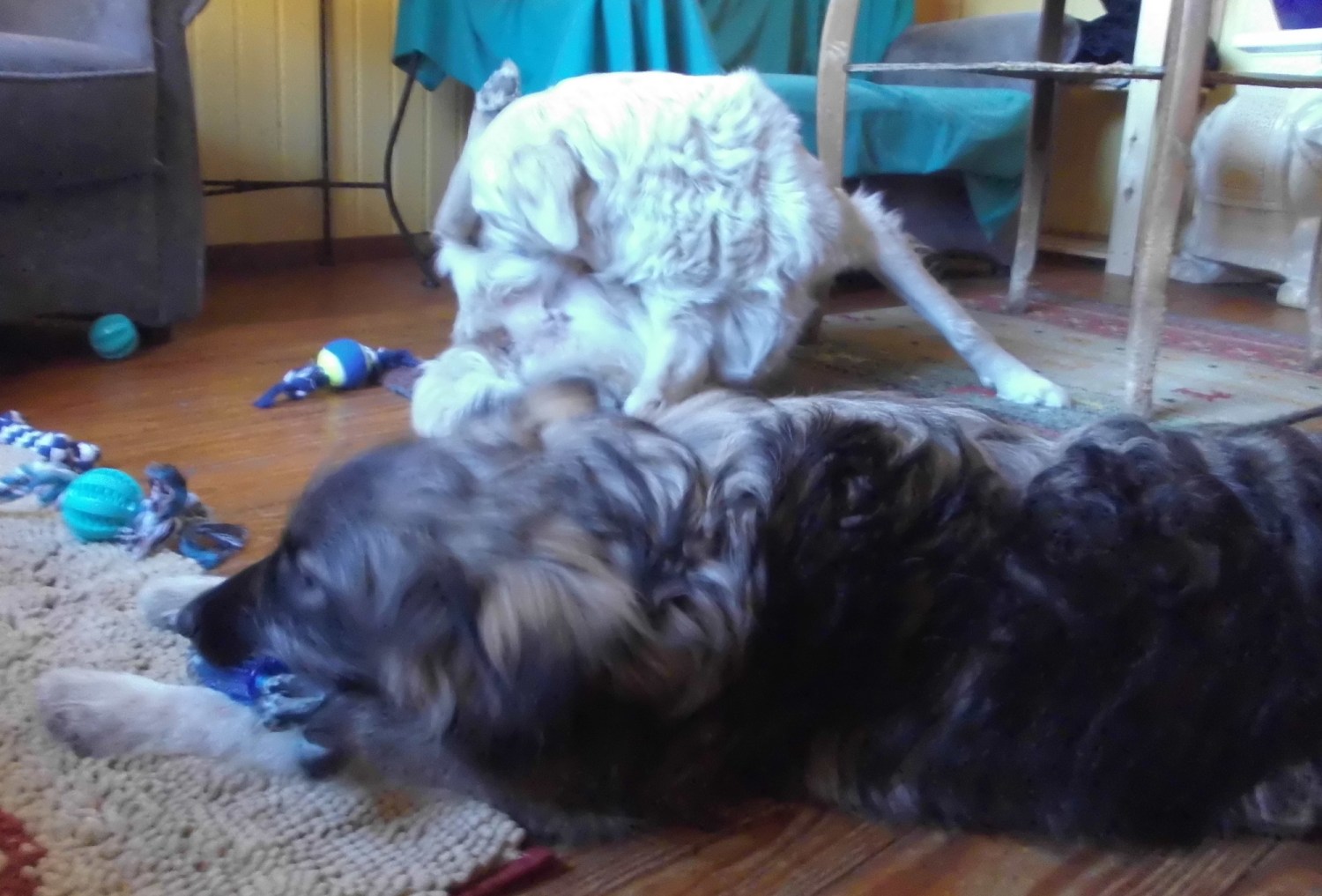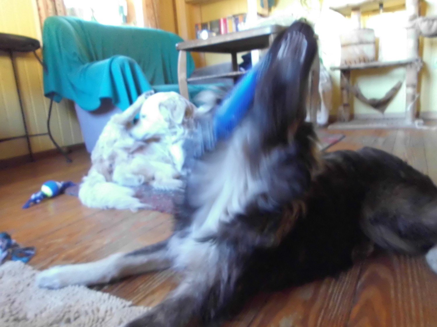 Marcy und Giada haben ihre wahre Freude daran. 😀 Lustig finde ich, dass Giada erst richtig zu spielen angefangen hat, nachdem Marcy hier eingezogen ist. 🙂 Marcy ist enorm gewachsen. Ich hätte nie gedacht, dass sie so groß wird. Als man sie fand, war sie ein sehr kleiner Welpe. Bin gespannt wie groß sie noch werden will. 😀
