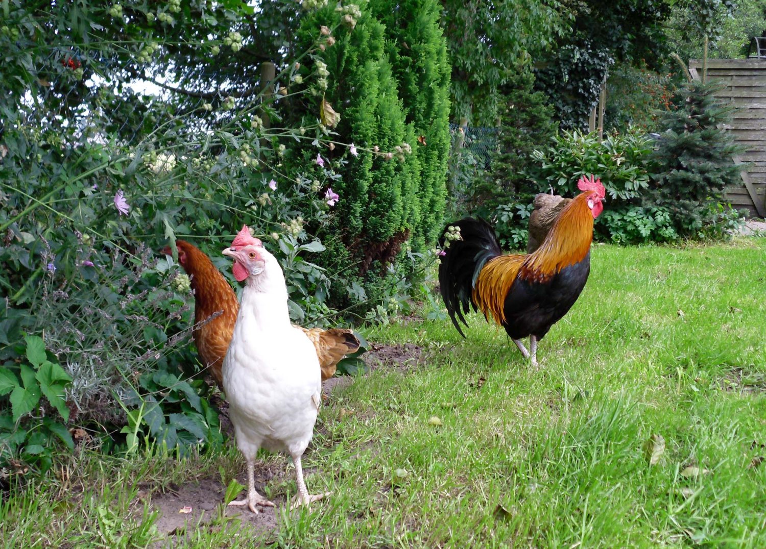 Ja, das war so toll, als hier noch die Hühner rumliefen. Leider hat der Habicht eins nach dem anderen gekillt. Die Hühner hatten keine Chance. Ein Habicht ist enorm wendig und schnell. Er hat sie sogar bis in den Wald verfolgt und dort erwischt. Ich war jedes Mal sehr total traurig. Darum haben wir die Hühnerhaltung aufgegeben. Hühner sind sehr intelligent und werden total zutraulich. Sie bleiben vollkommen freiwillig beim Menschen. Unsere konnte sich hier frei bewegen.