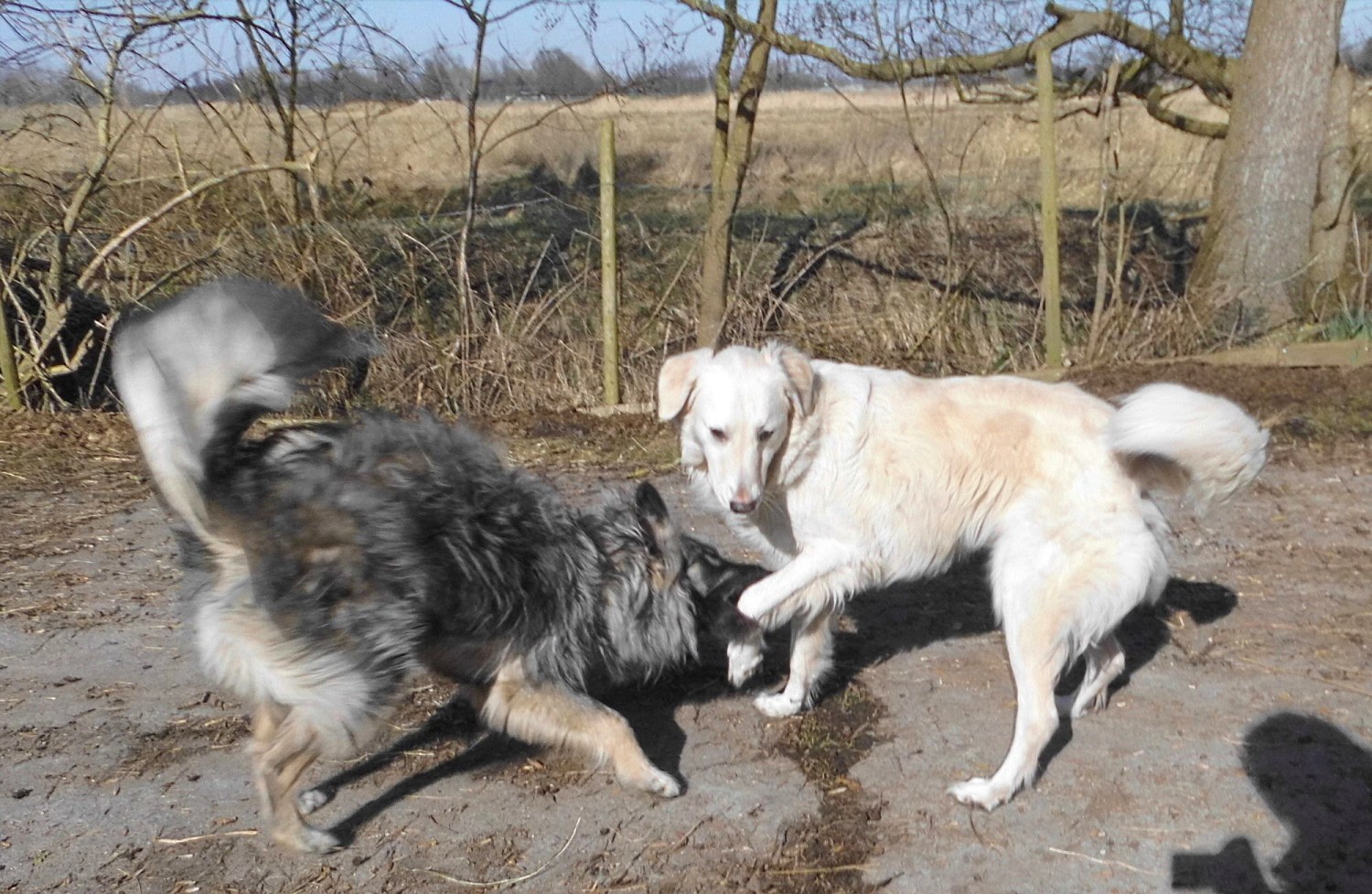 Auf dem Foto sieht Giada ja ziemlich gelassen aus, mehr verwundert als verärgert. Ein anderer Hund würde den kleinen Racke unzweideutig auf ihren Platz verweisen … 😉