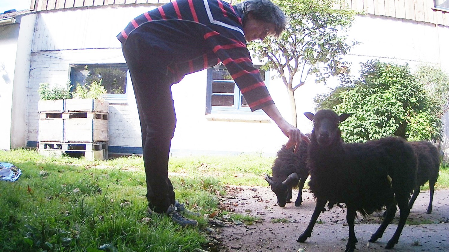 Das sind Ouessantschafe, auch Bretonische Zwergschafe genannt. Ursprünglich kommen diese kleinen Schafe von der französischen Atlantikinsel Ouessant. Die Augen finde ich auch toll. 😀
