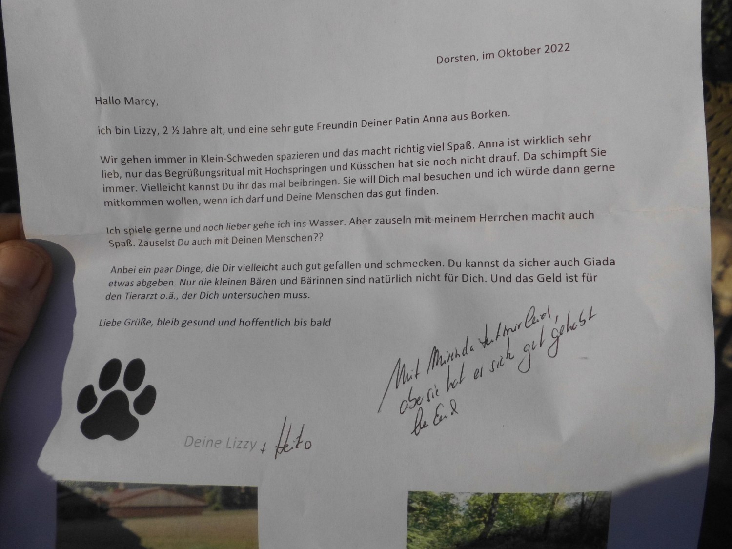Anna, die Patentante von Marcy, muss Lizzy und ihrem Herrchen Heiko von Kröti erzählt haben. Wir haben uns alles sehr über diese niedliche Idee gefreut!!!