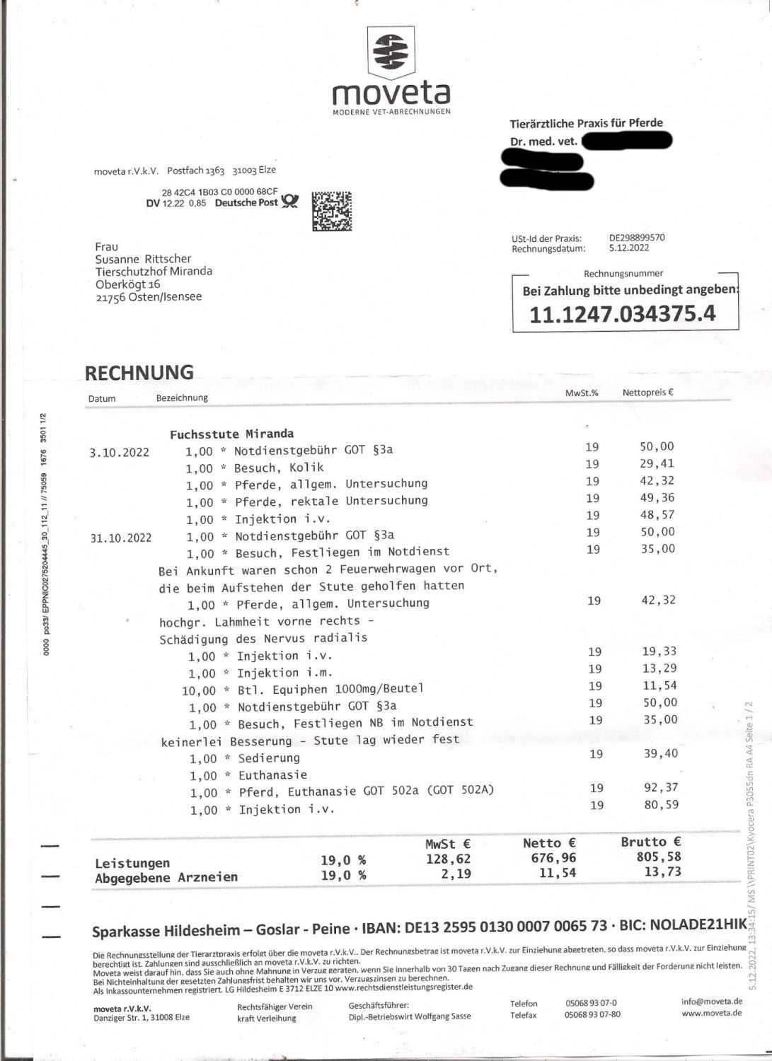Die letzte Tierarztrechnung für Miranda ist angekommen.