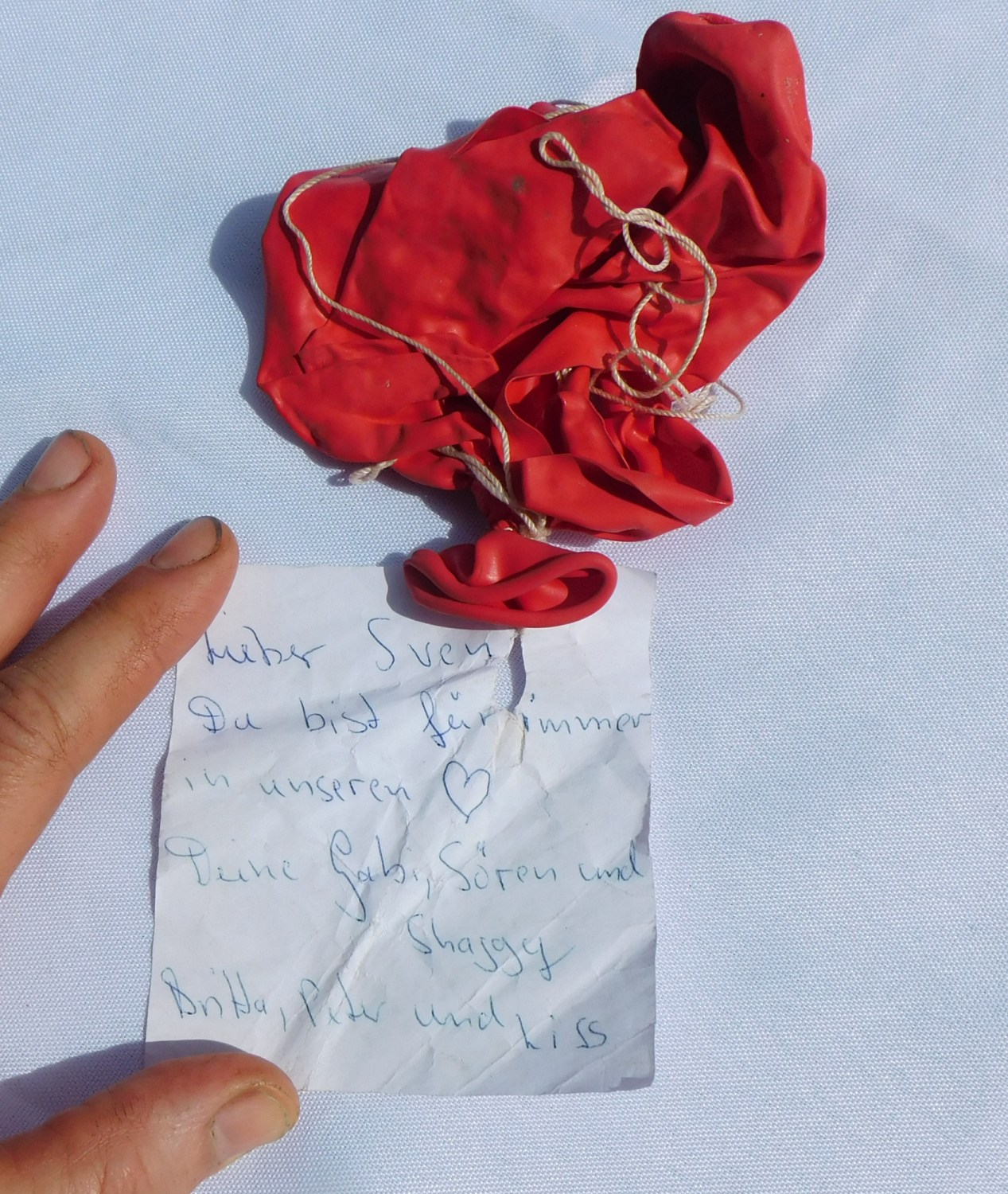 Und der Zettel daran sagt, dass die Ballons zu keinem fröhlichen Anlass gestiegen sind.