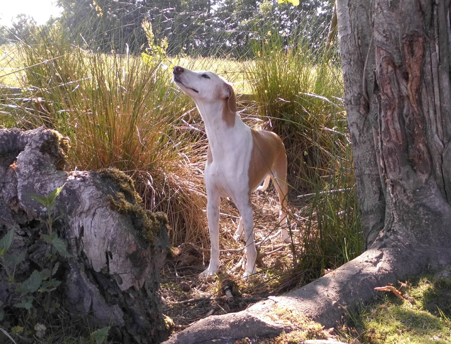 Chica war eine Mischung aus Podenco und spanischem Pointer. Sie war ein Angsthund, den niemand haben wollte. Ich übernahm sie von einem anderen Tierschutzverein, da saß sie bereits zwei Jahre auf ihrer Pflegestelle. Chica brauchte Zeit, Ruhe, und Geduld, bis sie sich hier zu einem beinahe normalen Hund entwickelte.