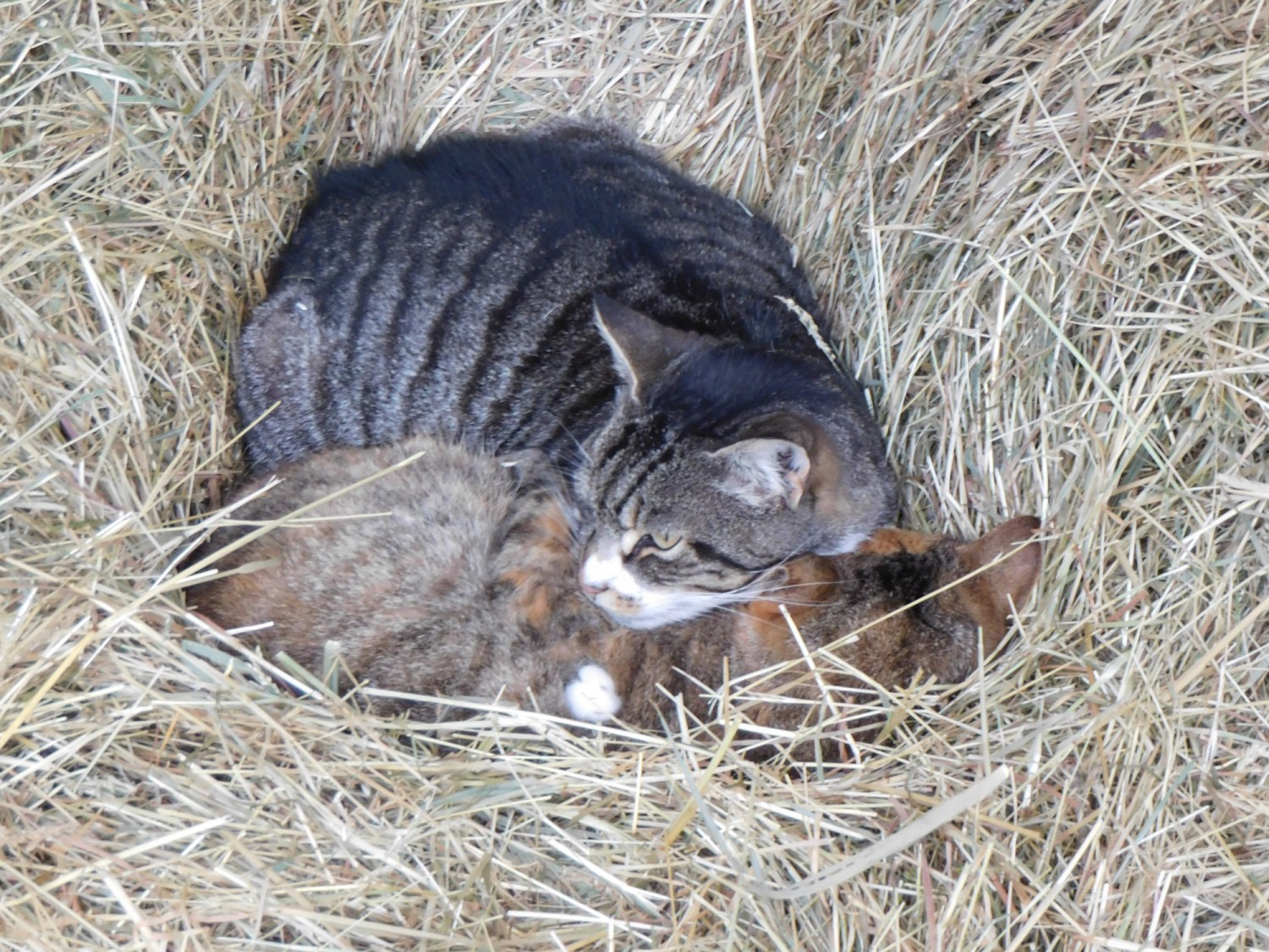 Nach der umwerfenden Beteilung, möchte ich heute das Rätsel lösen, welche Miezen hier im Heu kuscheln.