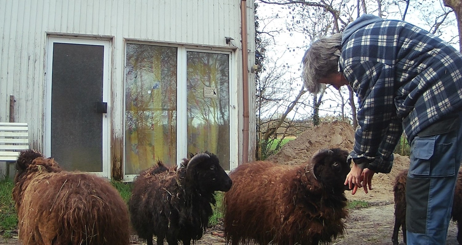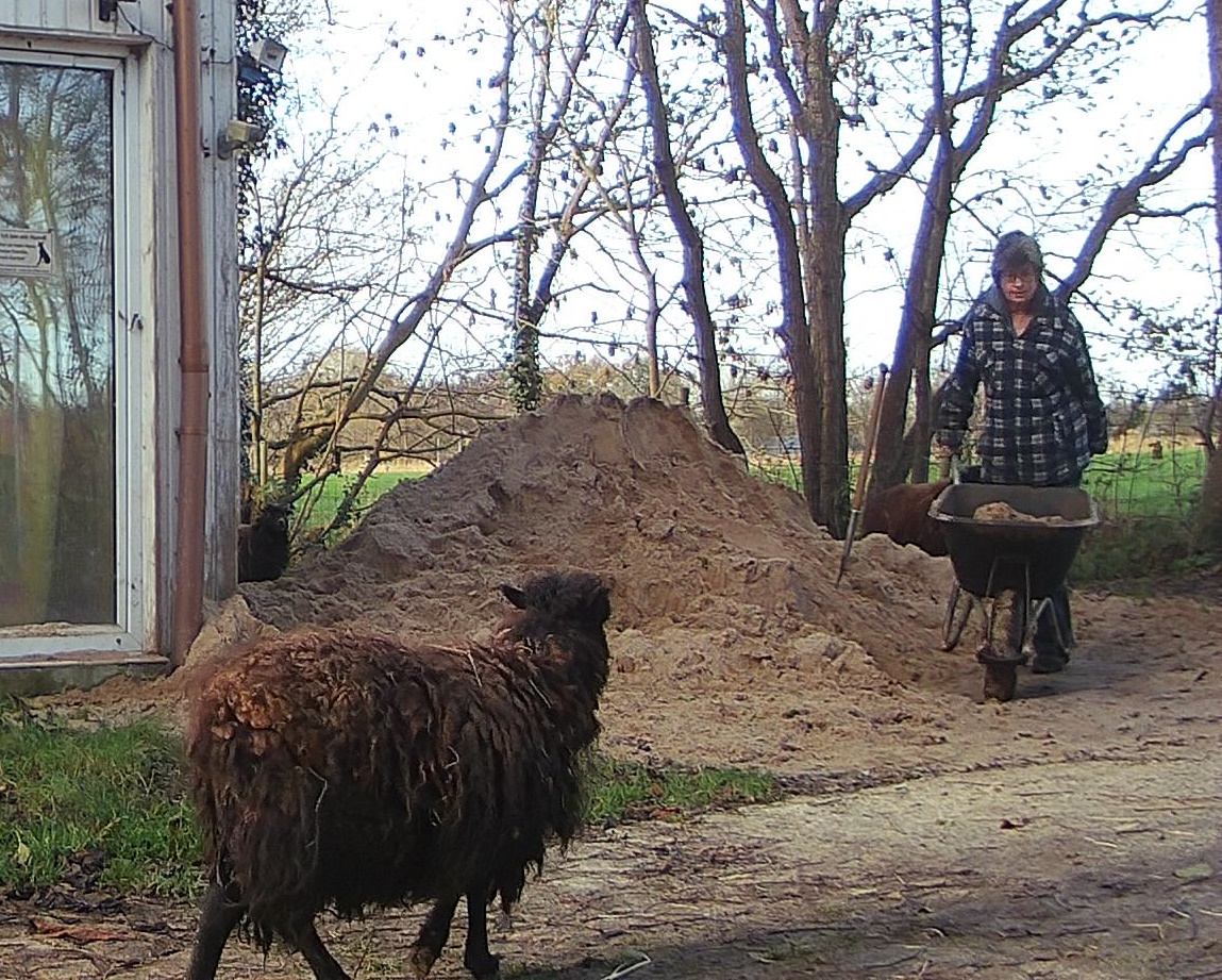 Die ganze Zeit laufen die Zwergschafe hinter mir her, stehen im Weg rum, müssen dabei sein. Kaum fängt es an zu regnen, haut die Bande ab und verkriecht sich im Stall.