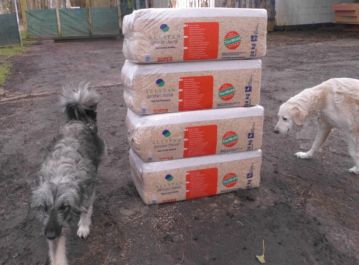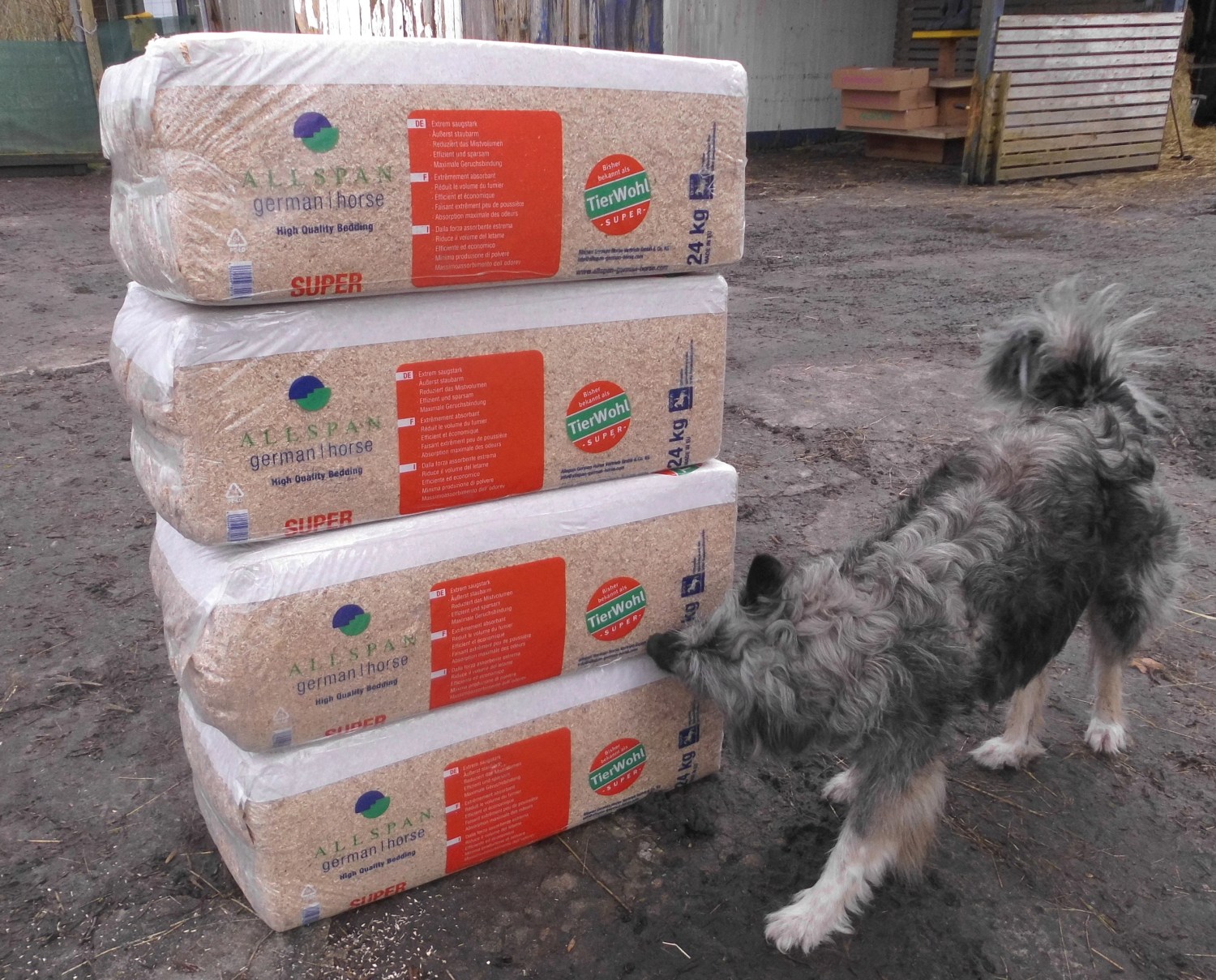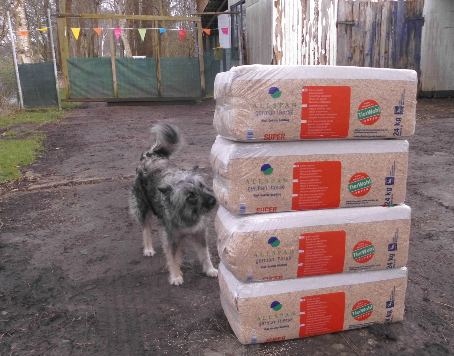Und Eugen hat für die Pferde 4 x Einstreu, Kanne Energiebarren und Horse Alpin Senior gekauft.