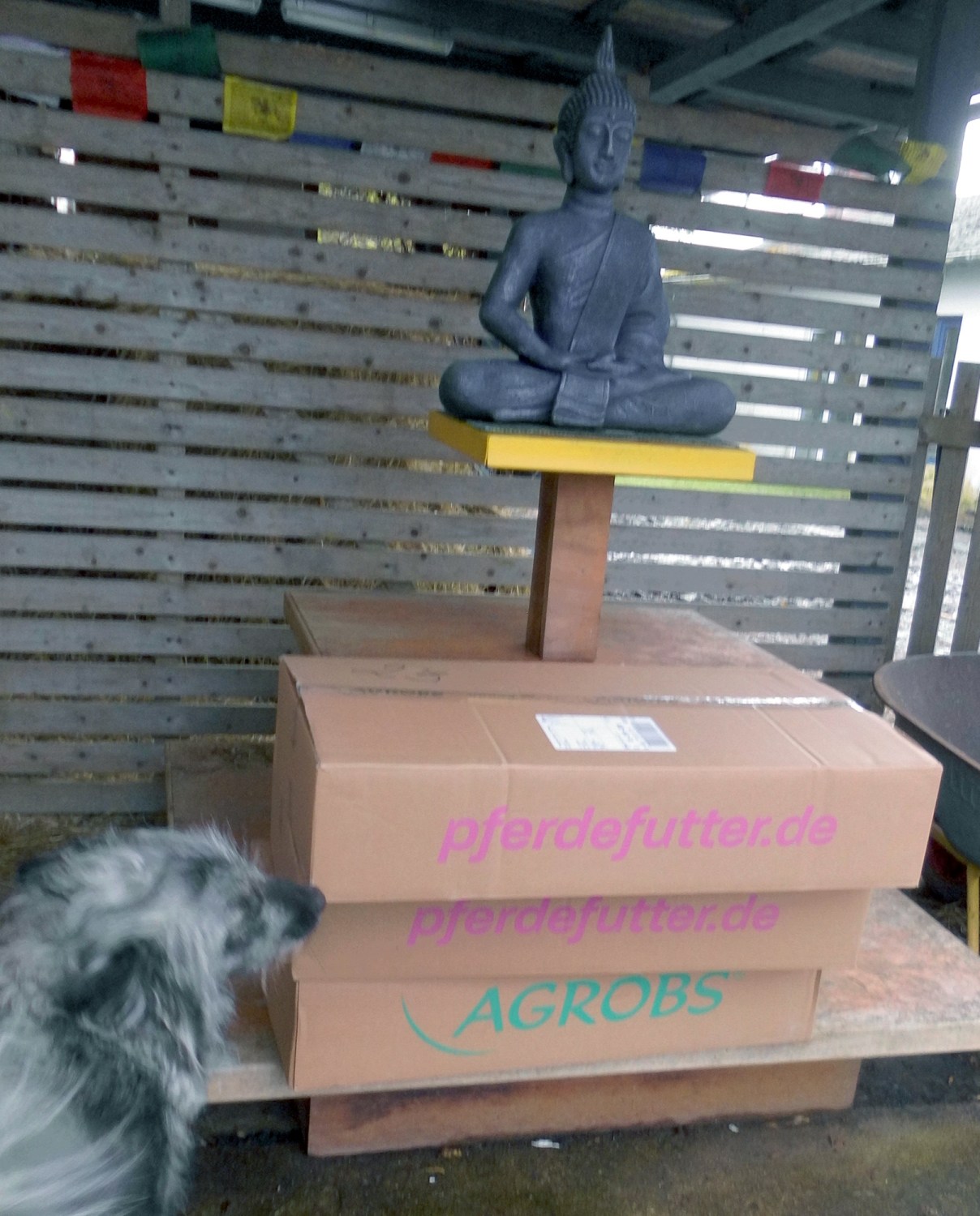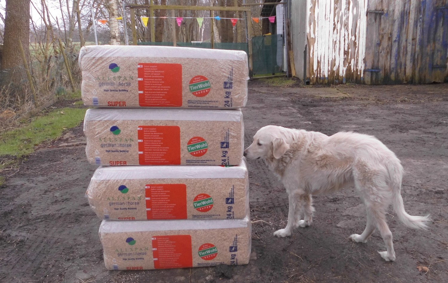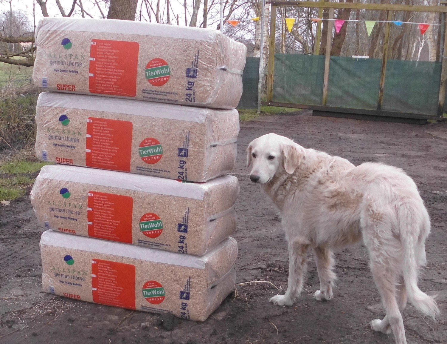 Und Eugen hat für die Pferde 4 x Einstreu, Kanne Energiebarren und Horse Alpin Senior gekauft.