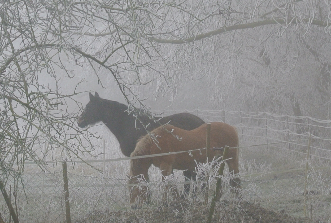 Die beiden Wallache verstehen sich jetzt schon sehr gut. Astron hat nicht mehr so große Angst vor Limerick.