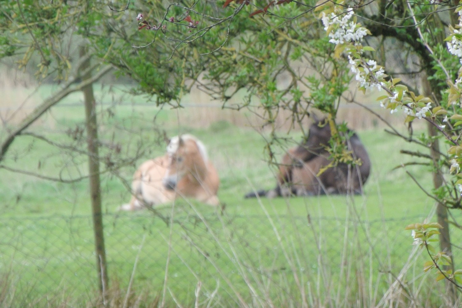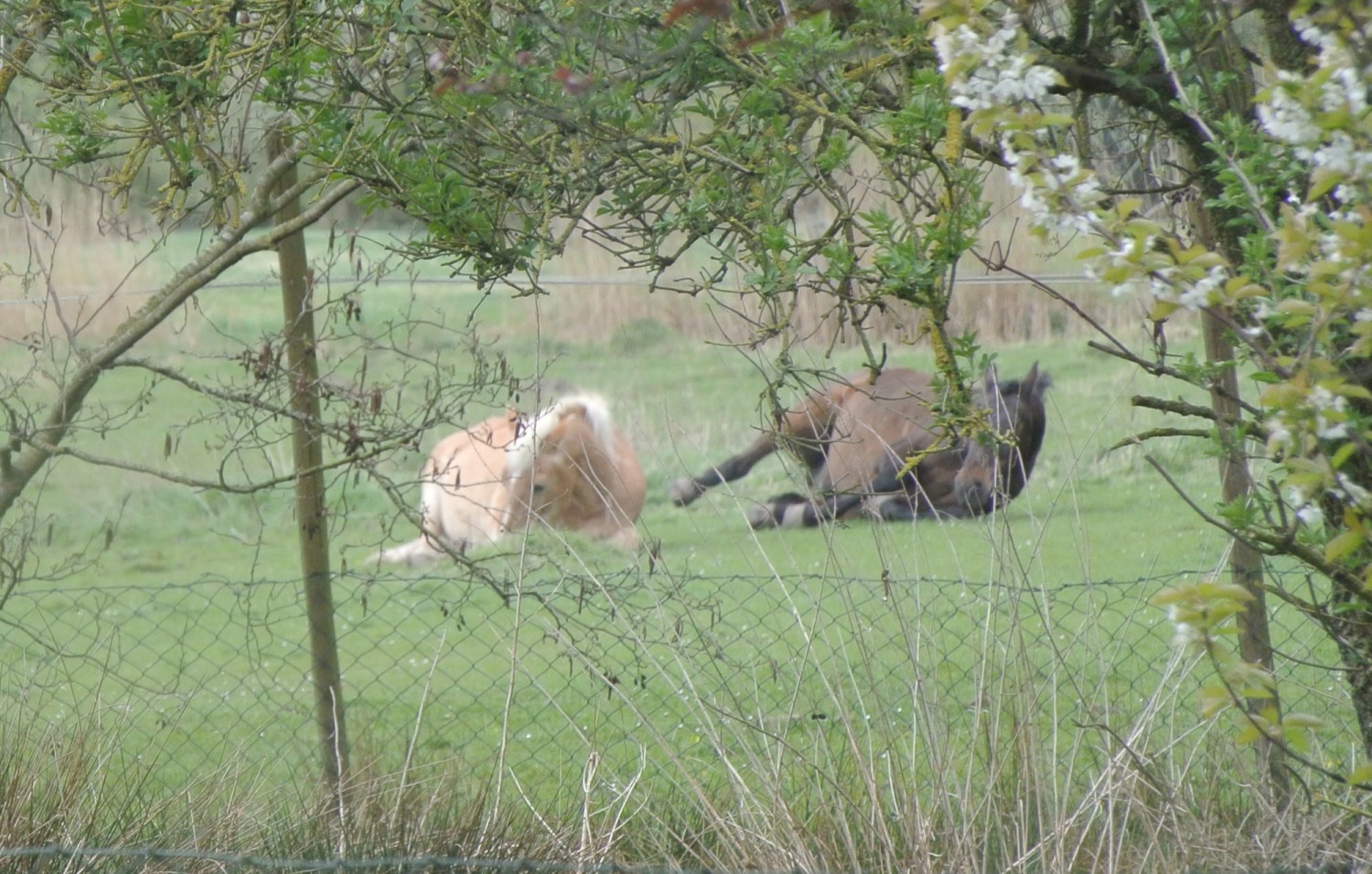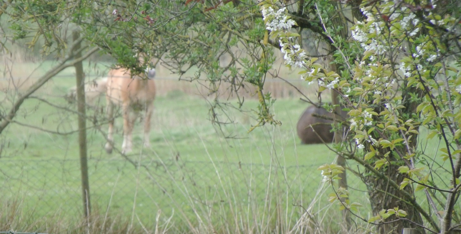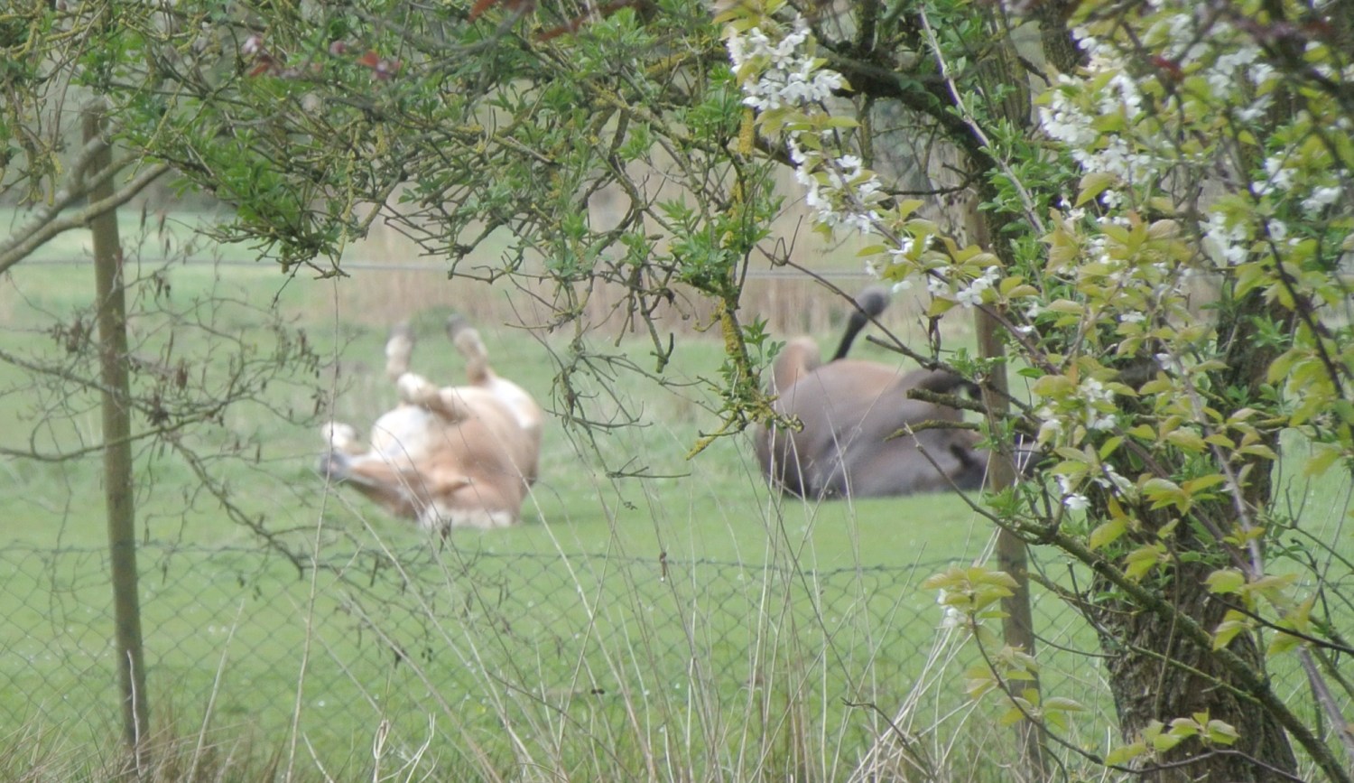 Gestern habe ich die Pferde zum ersten Mal, nebeneinander liegend, auf der Weide schlafen gesehen. Sonst steht immer ein Pferd, während das andere liegt. Das hat auch etwas mit dem Fluchttier Pferd zu tun. Einer muss sozusagen immer Wache halten.