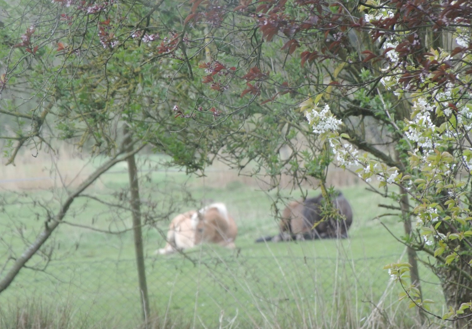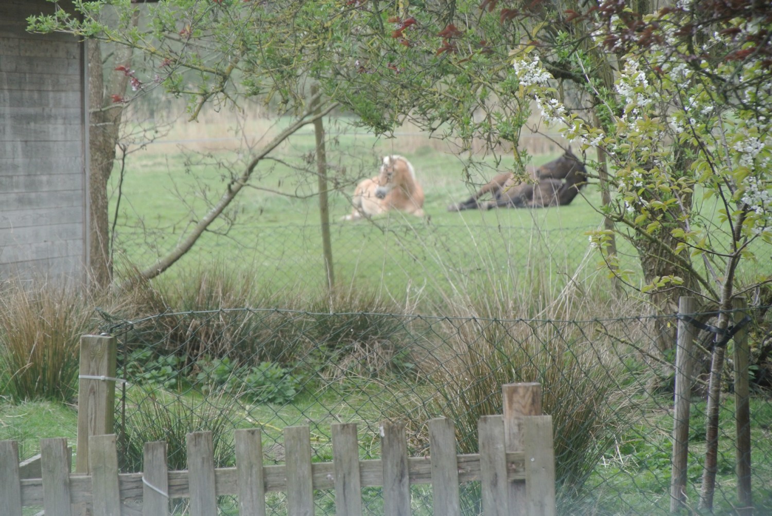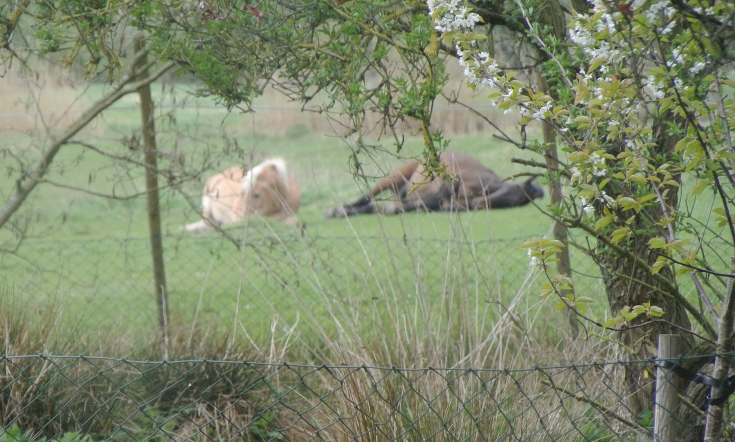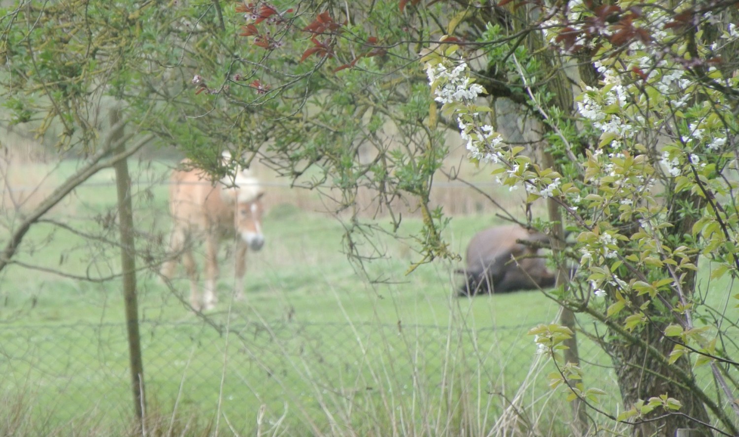 Gestern habe ich die Pferde zum ersten Mal, nebeneinander liegend, auf der Weide schlafen gesehen. Sonst steht immer ein Pferd, während das andere liegt. Das hat auch etwas mit dem Fluchttier Pferd zu tun. Einer muss sozusagen immer Wache halten.