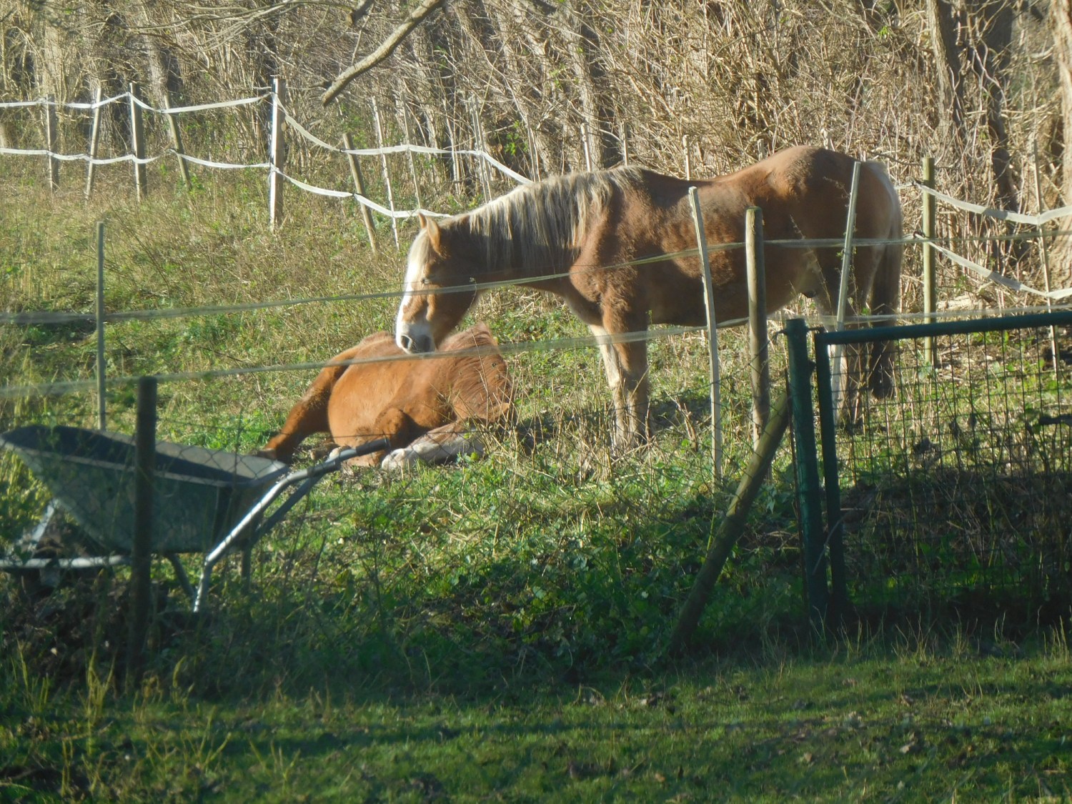 Die Pferde erholten sich von der Zahnbehandlung und der anstrengenden Sturmnacht, mit einem kleinen Schläfchen in der Sonne.