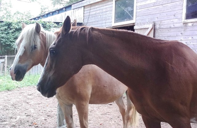 Die beiden Wallache verstehen sich jetzt schon sehr gut. Astron hat nicht mehr so große Angst vor Limerick.