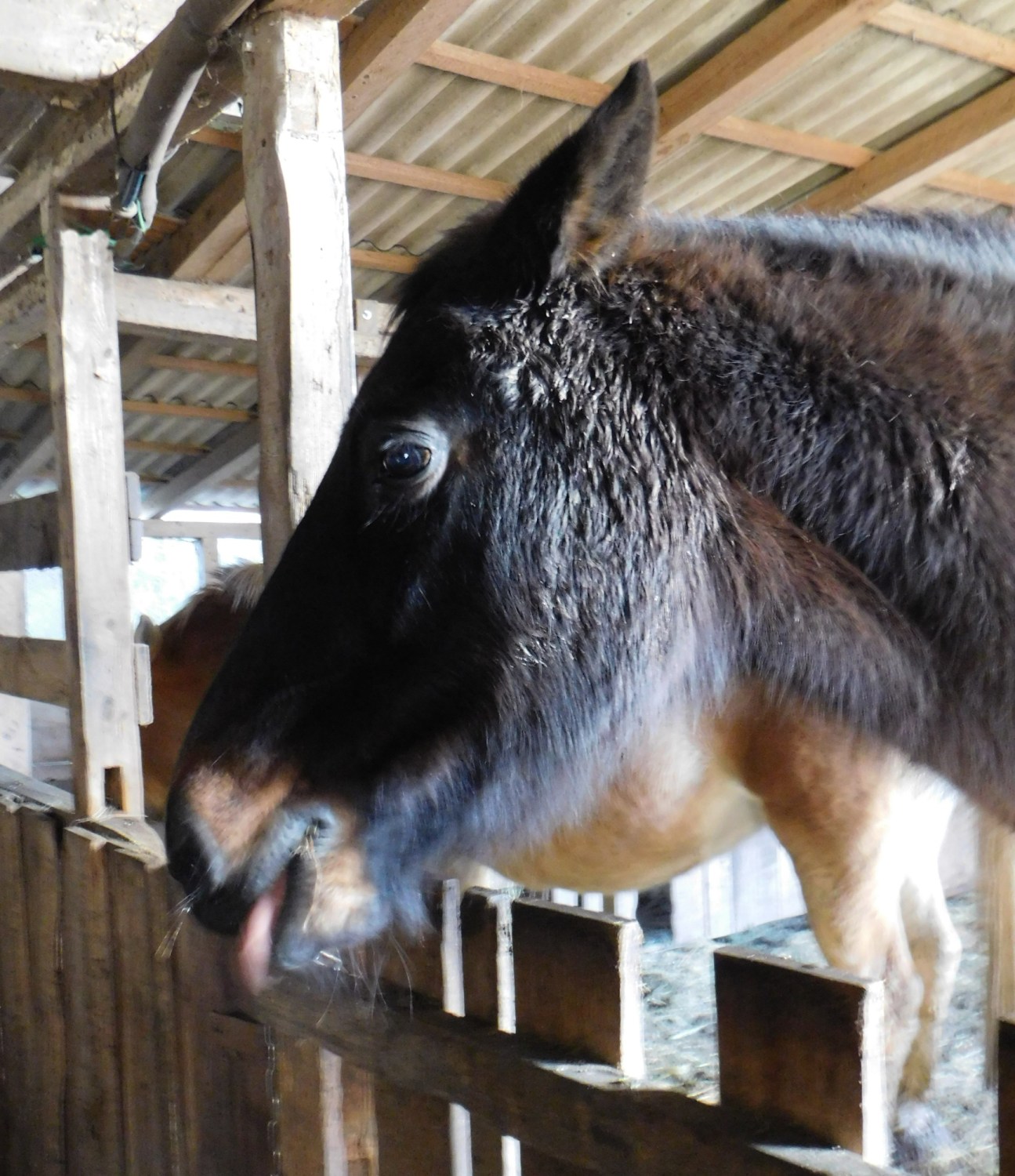 Das müsst ihr euch wie ein Zwang vorstellen, aus dem er nicht mehr herauskommt. Leider hat das anscheinend vor mir niemand erkannt. Es hieß, er sei ein kleine Clown, weil er so lustige Sachen mit seiner Zunge macht. Es sieht vielleicht lustig aus, wenn das Pferd mit der Zunge spielt, aber es ist ein Hilfeschrei.