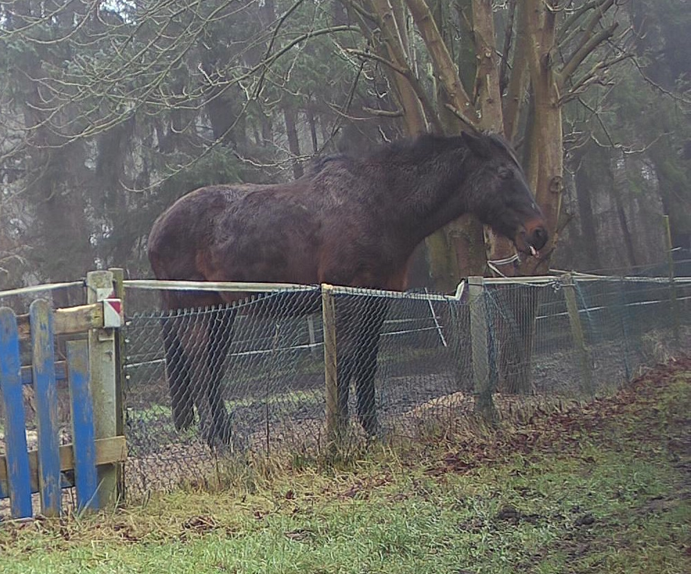 Jetzt ist der Hafi aber so schlau und bleibt bei schlechtem Wetter im Stall. Wenn er sich in den Eingangsbereich stellt, kann er Limerick draußen sehen.