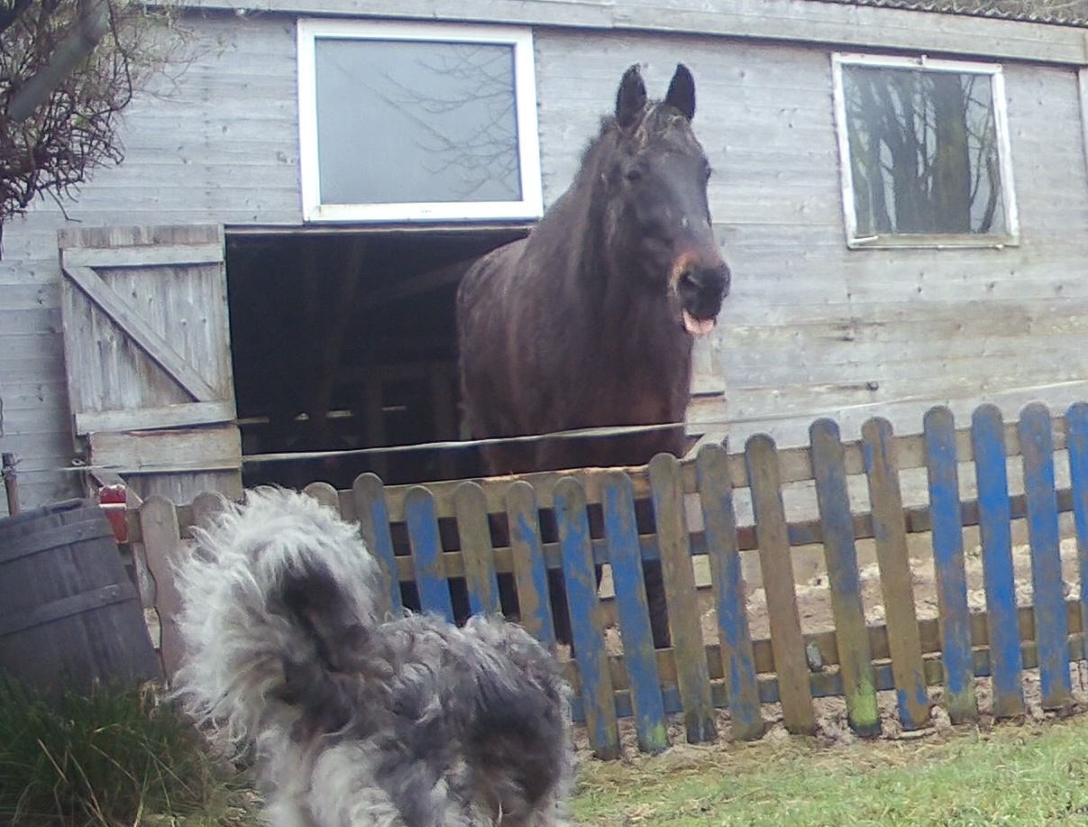 Ich war gerade beim Paddock abäppeln und Limerick beim Frühstück im Stall.