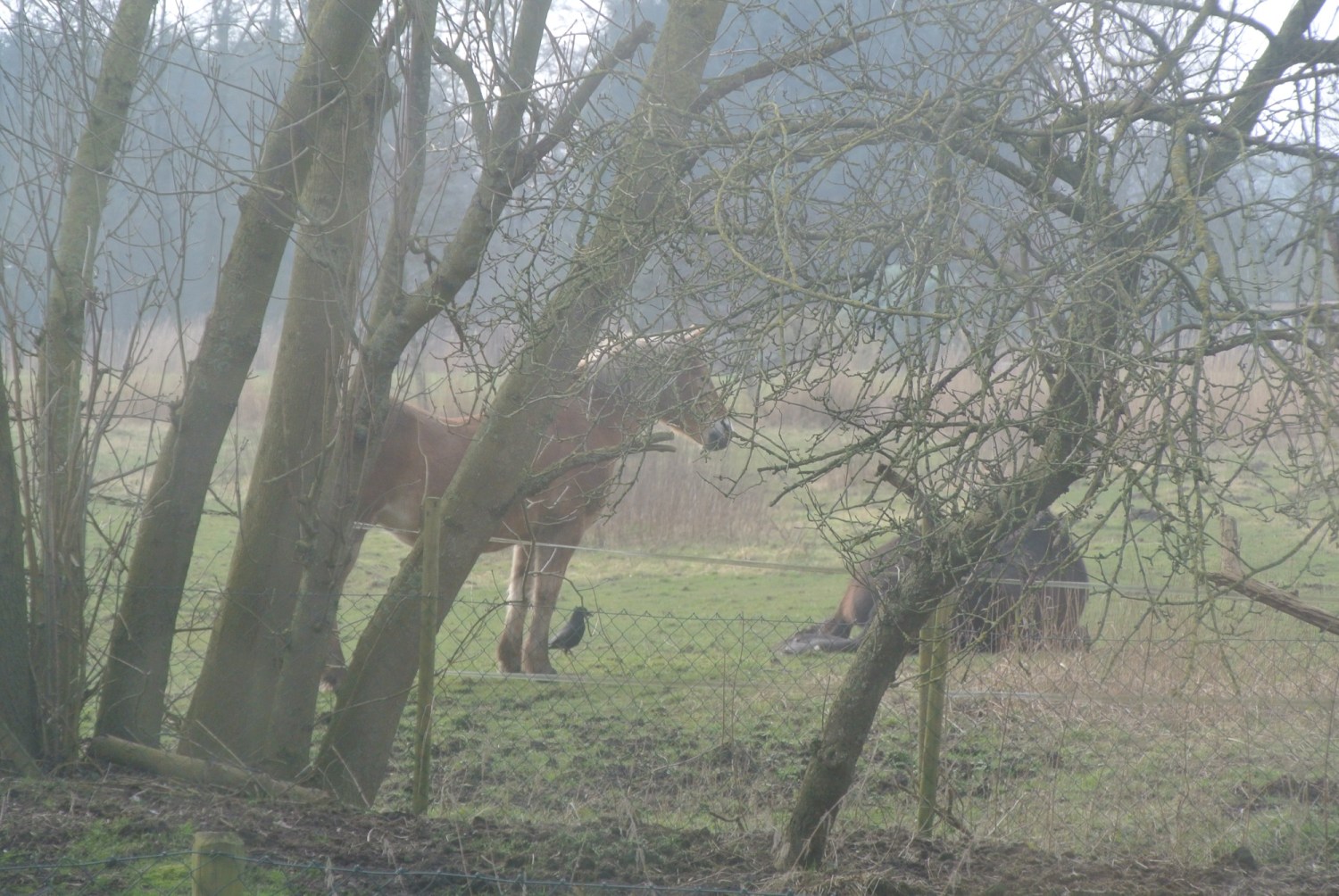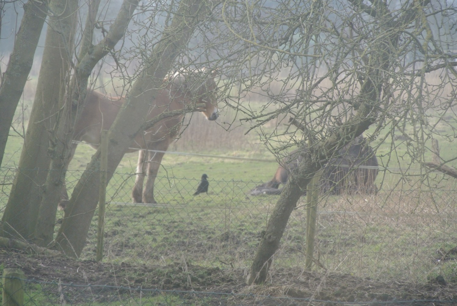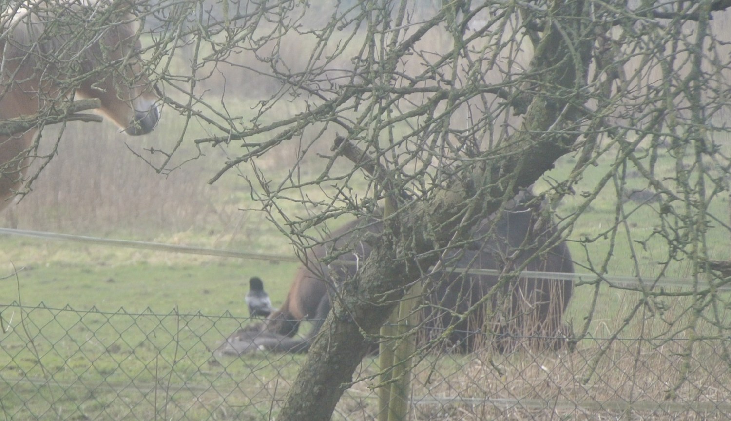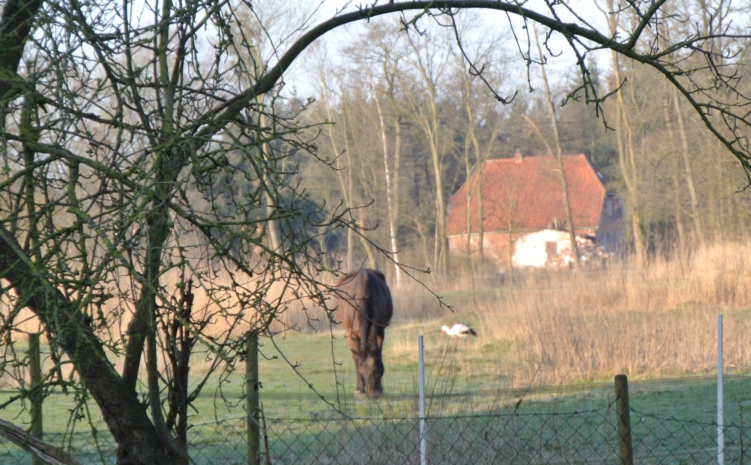 Heute morgen waren auf unserer Weide, zwei Störche, die lustig zwischen den Pferden herumliefen. Bis ich meine Kamera geholt hatte, war einer der Störche auf das Nachbarstück geflogen.